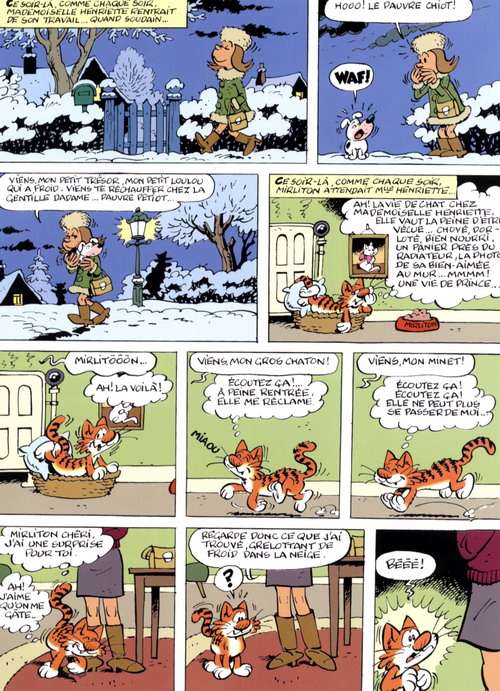 Dans cet album, une grande erreur est enfin réparée : personnage du journal de Spirou, Mirliton n’a jamais connu la consécration du passage à l’album. Justice est faite ! Belle la Vie comprend les histoires complètes publiées en 1970 de Macherot et Cauvin, ainsi qu’une histoire inédite scénarisée par Raoul Cauvin et mise en dessin par Erwin Drèze.