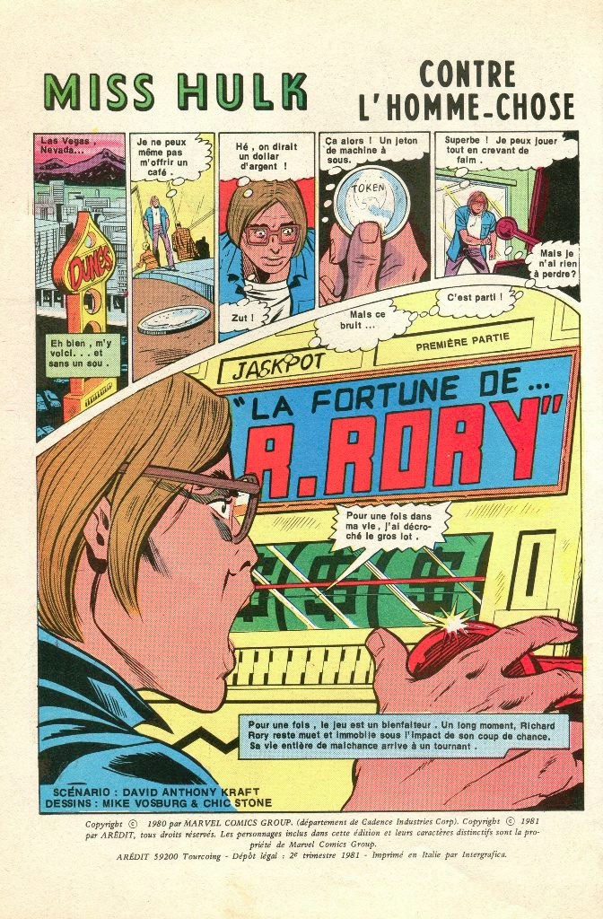1/ Miss Hulk - Miss Hulk contre l’Homme-Chose, Première partie : La fortune de R. Rory (17 pages