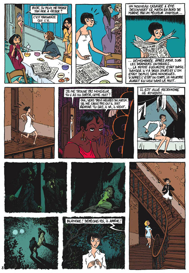 Blanche y fait la connaissance de personnages souvent hauts en couleur et, parfois, particulièrement inquiétants, comme celui que l’on appelle « Monsieur ». Blanche pense avoir affaire à l’assassin de sa soeur, mais rien n’est vraiment sûr. Et que penser de « Joli Coeur », autre personnage dangereux, tout comme « Le Rouquin » qui s’avère tout aussi tordu ? Et que dire de Judith qui semble tenir les filles d’une main de fer sans publier l’énigmatique Miss Jo dont le rôle sera ici déterminant ? D’abord apparue comme une oie innocente, Blanche basculera elle même dans une violence irréversible, prête à tout pour découvrir enfin la vérité...