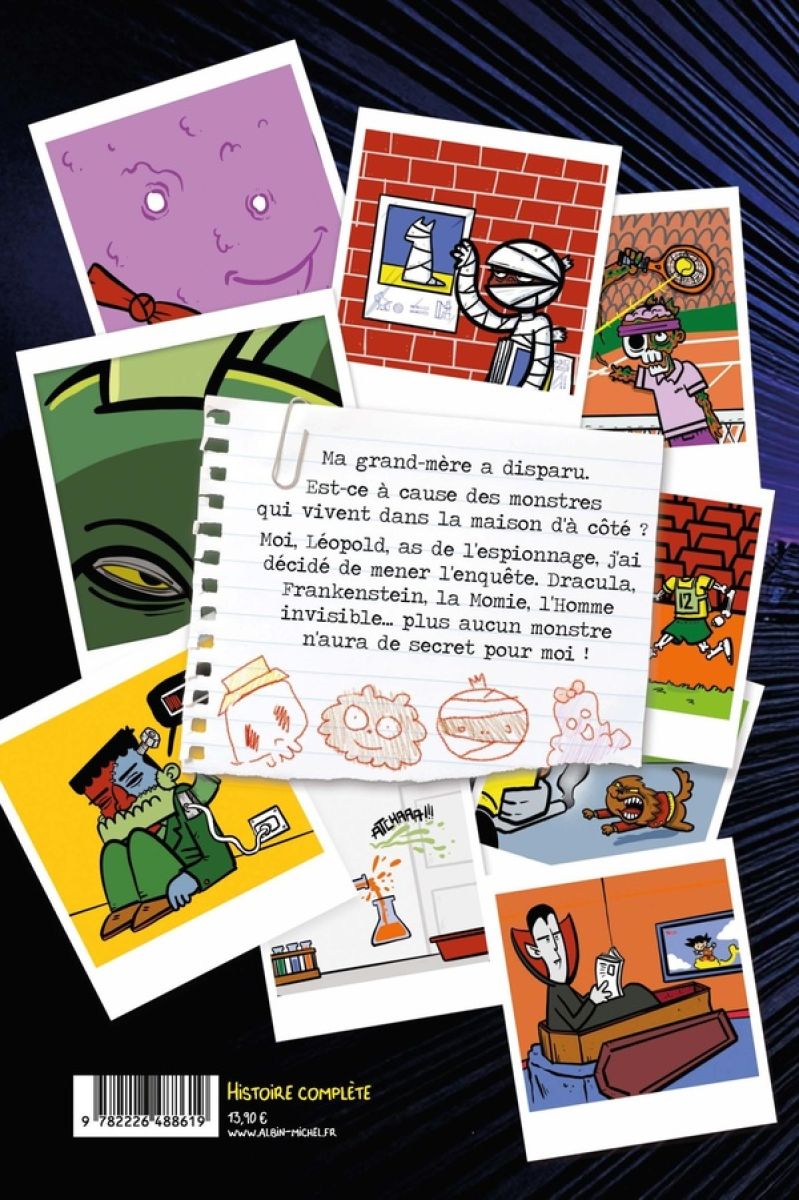 La grand-mère de Léopold a disparu. Cette disparition aurait-elle un lien avec la présence de monstres dans la maison d’à côté ? As de l’espionnage, Léopold décide d’enquêter ! Dracula, Frankenstein, la Momie, l’Homme invisible... Plus aucun monstre n’aura de secret pour lui !