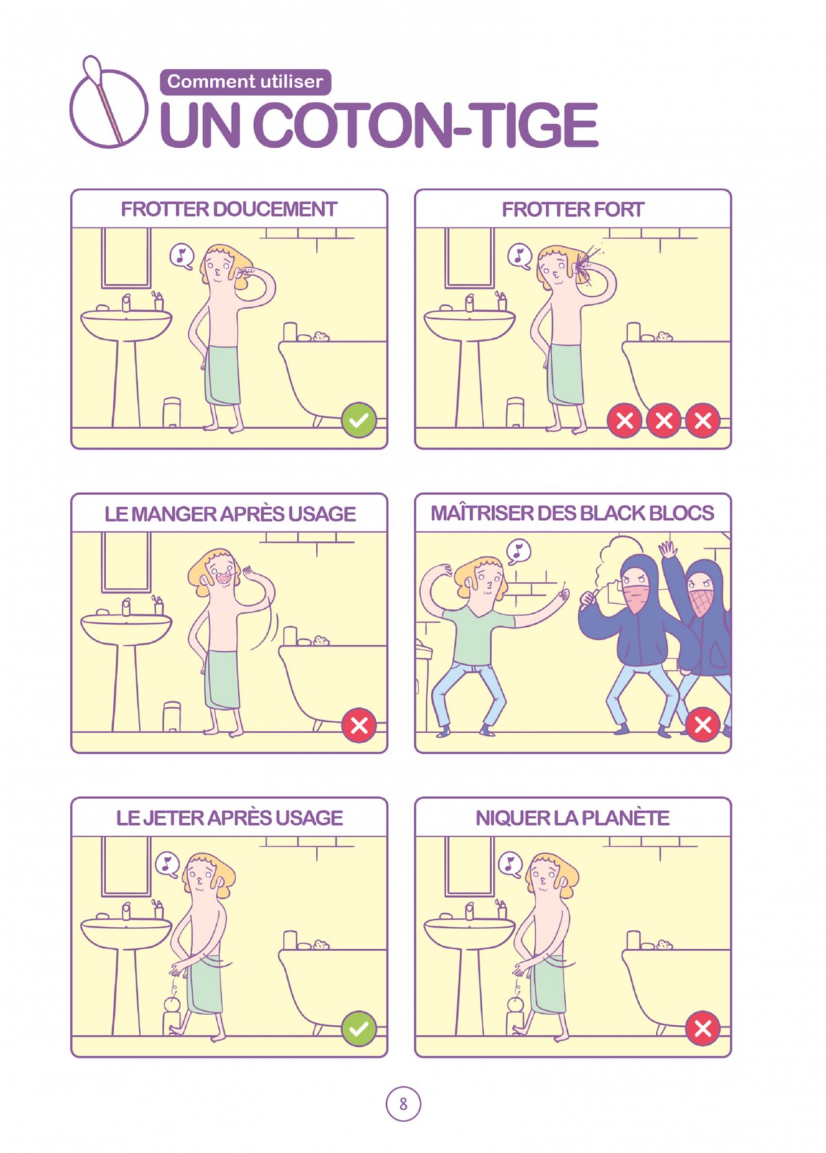 Le Mode d’emploi de tout s’impose comme le document de référence pour savoir ce qu’il faut et surtout ce qu’il ne faut pas faire avec tous les objets à notre portée. Fiche après fiche, notre testeur va vivre une aventure, non sans danger notamment avec la mafia japonaise, qui l’amènera jusqu’en prison. Car oui, il y a toujours un risque quand on utilise un objet et on peut vite en payer le prix.