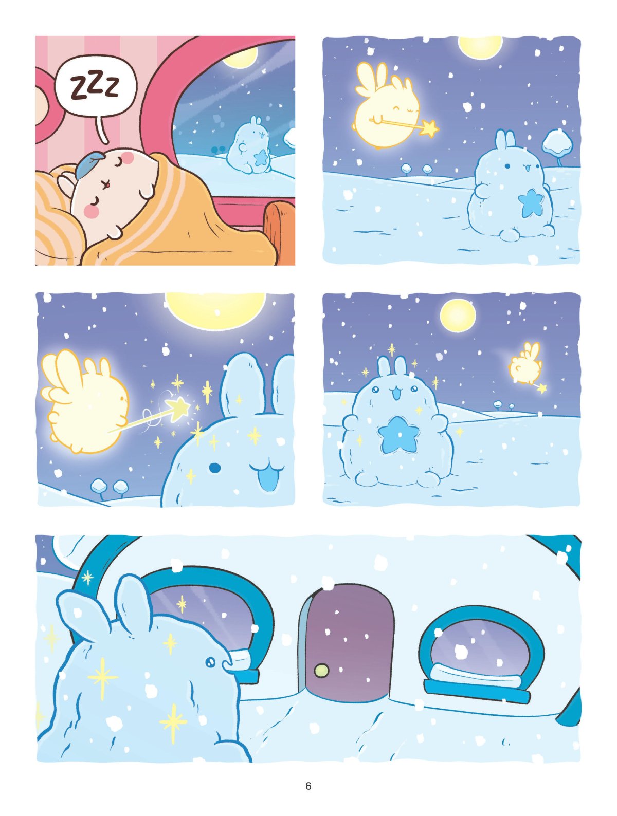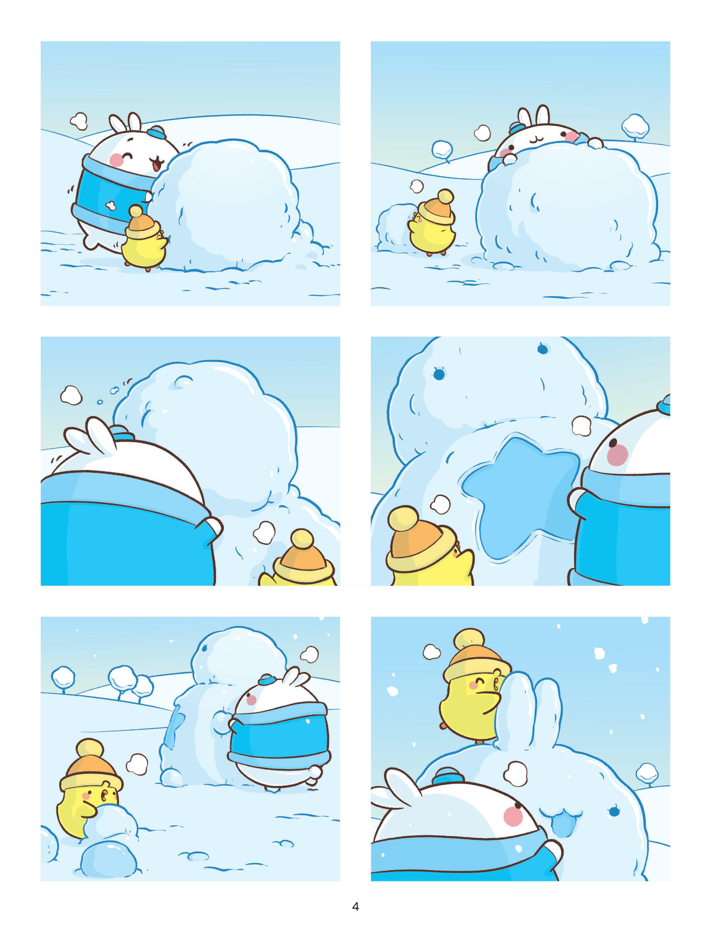 En voyage dans la montagne, Molang et Piu Piu trouvent un oeuf dans une forêt enneigée. Ils vont en prendre soin pour le voir éclore et découvrir qui l’a pondu. Lors d’une nuit d’hiver, une fée va permettre au bonhomme de neige de Molang et Piu Piu de prendre vie... L’étonnante créature va emmener les deux amis dans de folles aventures. Impatients de retrouver le printemps après un hiver trop long, Molang et Piu Piu décident d’hiberner. Cabane de couvertures, provisions de friandises, ils sont prêts pour une longue nuit de sommeil. Mais hiberner n’est pas si facile et la tentation de jouer dans la neige est forte...
