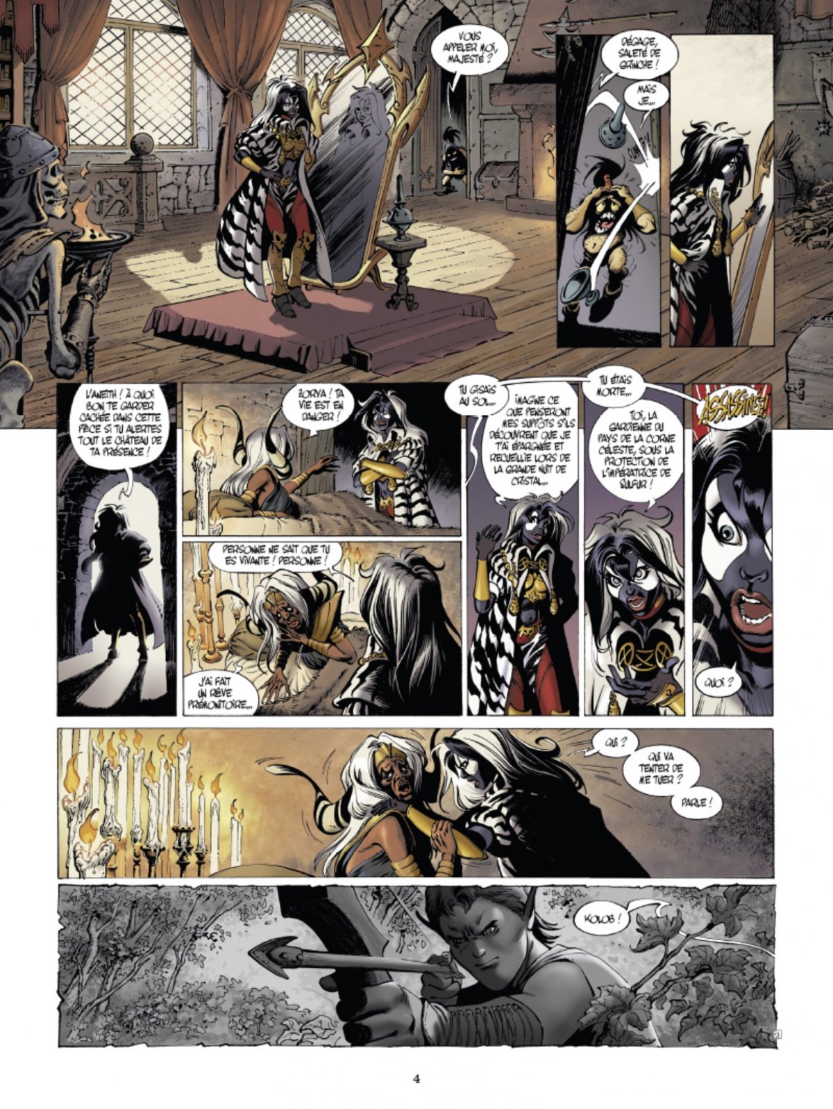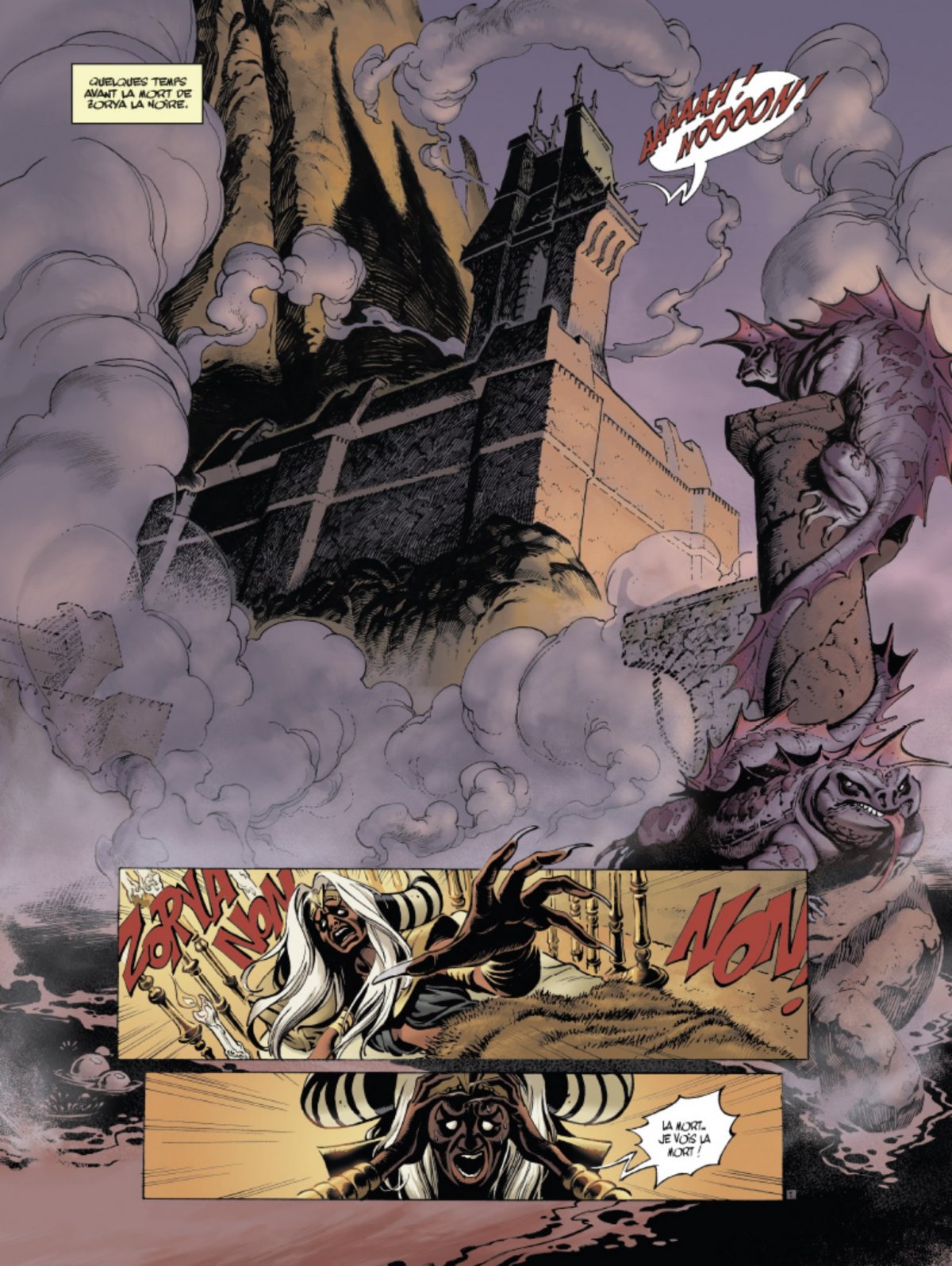 Le peuple de la Corne Céleste a été presque entièrement massacré par Zorya la Noire devenue l’impératrice d’un pays qu’elle a rebaptisé Sulfur. Néanmoins, une poignée d’hommes et de femmes résistent à l’oppression. Kolob en fait partie. Toute son enfance, il a été bercé par l’idée qu’il serait celui qui provoquera la chute de Zorya la Noire. Ainsi, il s’infiltre comme soldat dans l’armée de Zorya. Sa mission : tuer l’impératrice ! Pourtant, malgré sa détermination, les choses ne vont pas se passer comme il l’avait prévu.Flash-back du premier épisode de Zorya la noire, cet étonnant deuxième tome bouleverse totalement la situation, approfondissant encore l’univers fascinant de cette série mythique de l’heroic fantasy en BD.