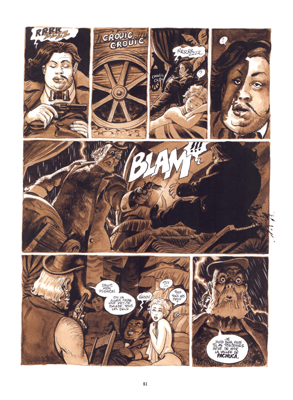 Cornelia et Lindbergh filaient le parfait amour jusqu’à ce que la routine du quotidien vienne s’en mêler, mais pas le temps de s’apitoyer ! Cornelia devenue shérife, se lance à la poursuite d’un cirque itinérant qu’elle soupçonne d’avoir kidnappée un jeune garçon. Lindbergh quant à lui refuse d’attendre sagement madame à la maison et se jette à sa poursuite. Dans Mondo Reverso, les codes sont bousculés : les femmes font la loi à coup de flingue et de peignées mémorables à en faire pâlir Clint Eastwood quand les hommes se contentent de les épouser ou de vendre leurs charmes parés de leurs ombrelles et de leurs décolletés plongeants.