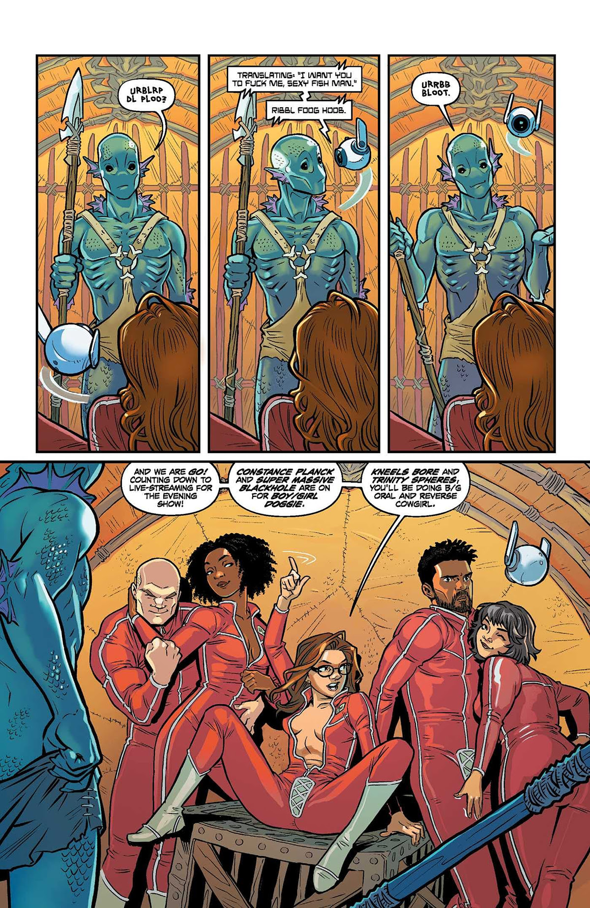 Dans le futur, obtenir des budgets pour la recherche scientifique est mission impossible. Alors, lorsque Christine Ocampo invente un dispositif de téléportation, une idée lui bient : voyager vers de nouveaux mondes, s’engager intimement avec des extraterrestres et filmer ses exploits. De quoi revigorer l’offre vidéo pour adultes sur internet et obtenir ainsi les subventions espérées. Avec sa joyeuse bande de scientifiques-porno-stars, elle part explorer l’univers... et pas que. Tout ça pour le bien de l’humanité.
