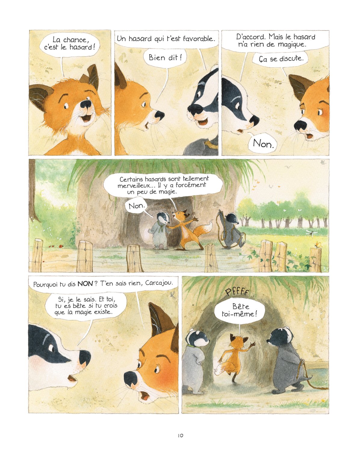 Décidément, blaireaux et renards ne sont pas pareils. Et quand il s’agit des croyances, évidemment, ils ne sont jamais d’accord. Quand leur ami Martis arrive avec un porte-bonheur, Carcajou se moque et décide de prouver à tout le monde qu’il n’y a rien de magique dans ces amulettes en bois. Mais l’affaire n’est pas simple, l’expérience tourne mal et le doute s’installe. Si tout ça n’est qu’une question de hasard, comment se fait-il que certains semblent clairement plus chanceux que d’autres ? Avoir de la chance, finalement, à quoi ça tient ?
