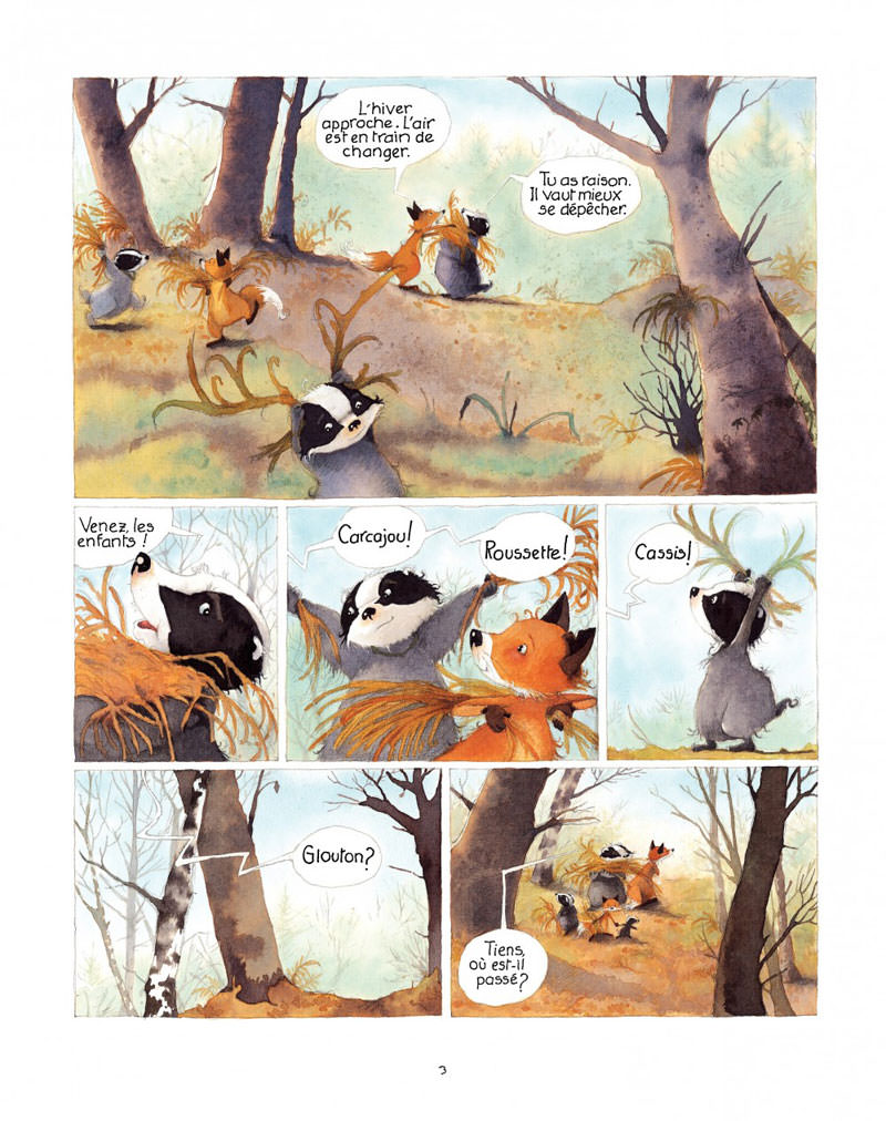 L’hiver approche. Monsieur Blaireau, madame renarde, Glouton, Carcajou, Roussette et Cassis se dépechent de préparer leur "maison" avant l’arrivée du grand froid. Oui mais voila, les blaireaux et les renards, ça ne vit pas l’hiver de la meme maniere ! Les blaireaux en profitent pour dormir, encore et encore, au plus grand plaisir de Glouton, ce qui n’est pas du gout de Roussette, qui aimerait bien jouer. Madame renarde décide donc d’initier sa fille a l’art de la chasse ! Comment Monsieur Blaireau, madame renarde et leur tribu vont-ils traverser leur premier hiver ensemble ?