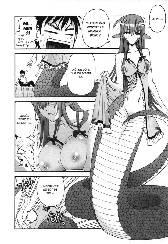 Madame Smith vient d’annoncer à Kimihito et ses Monster Girls qu’il avait été choisi comme cobaye pour tester le mariage interespèces, on lui demande de choisir une épouse parmi ses trois invitées, Miia, Papi ou Centorea !