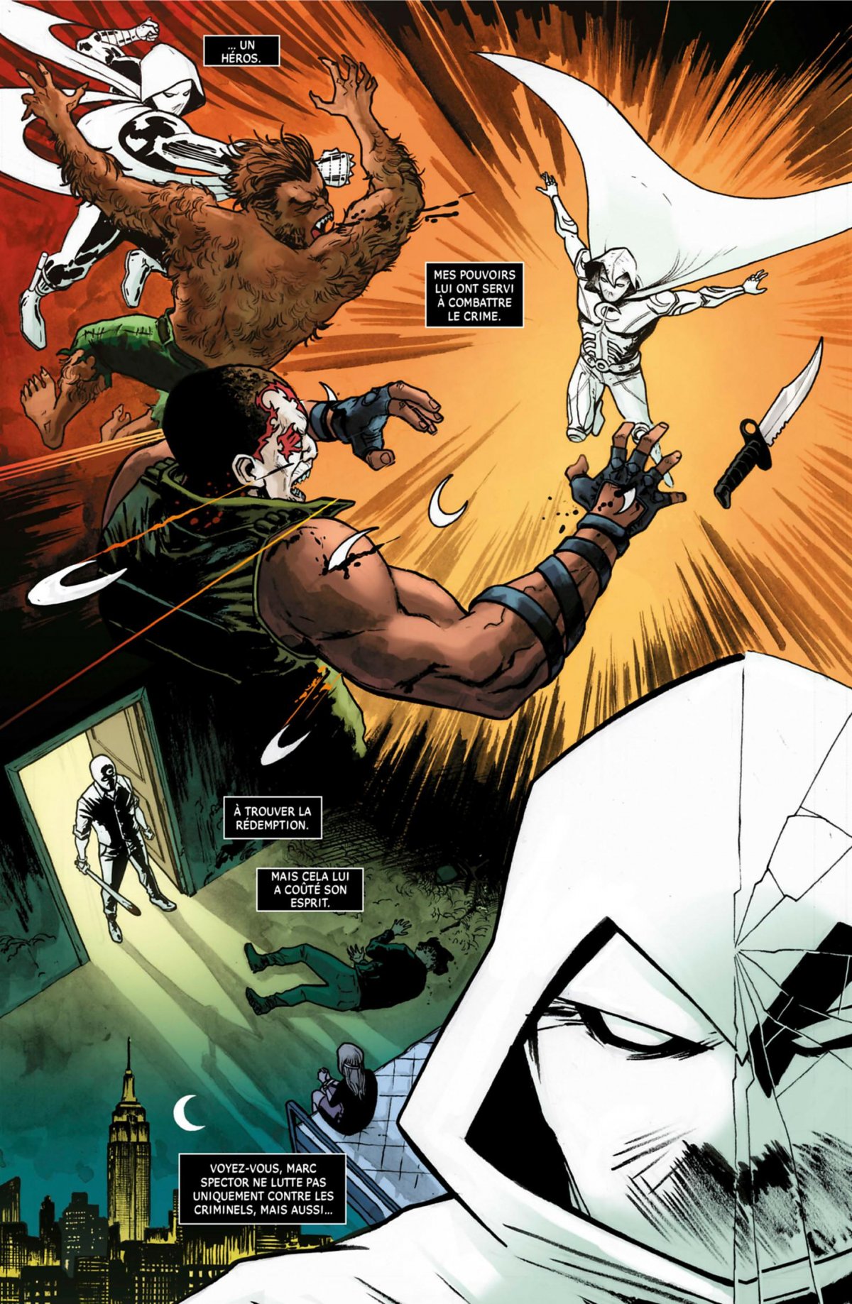Moon Knight rentre dans l’ère Marvel Legacy. Le Sun King, le nouvel ennemi de Moon Knight, a bien l‘intention de révéler la vérité sur le Chevalier de la Lune. Une vérité qui risque de changer complètement la vie de Marc Spector