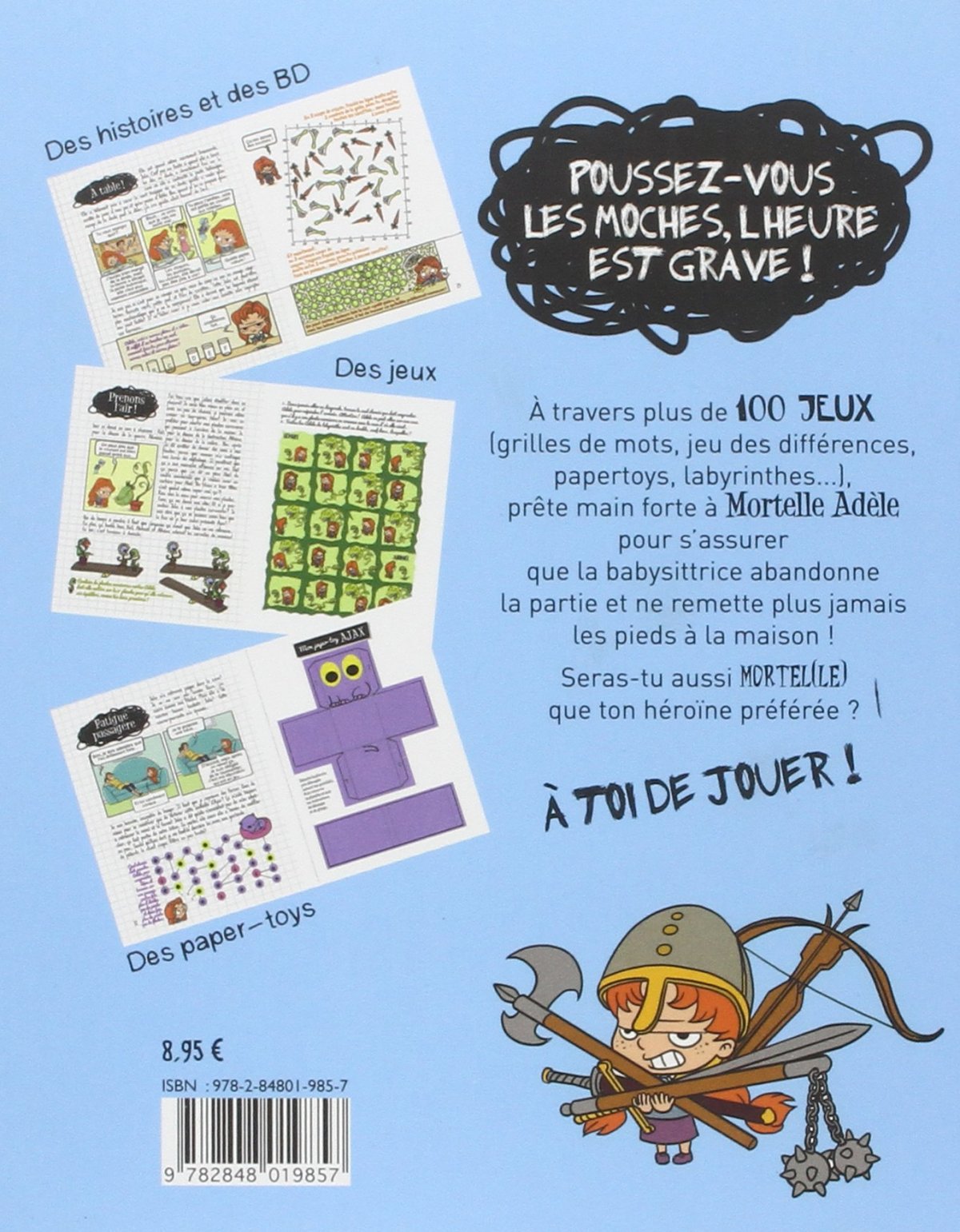 Adèle est gardée par sa baby-sitter durant toute une longue soirée. La guerre est déclarée donnant le prétexte à des jeux hilarants, fous et décalés... à l’image de votre héroïne préféré. Des jeux, des pliages, des découpages à la façon d’Adèle : fabriquer son four micro-onde en papier (sans oublier Ajax... dedans), transformer Jade, sa poupée en papier en monstre zombie...