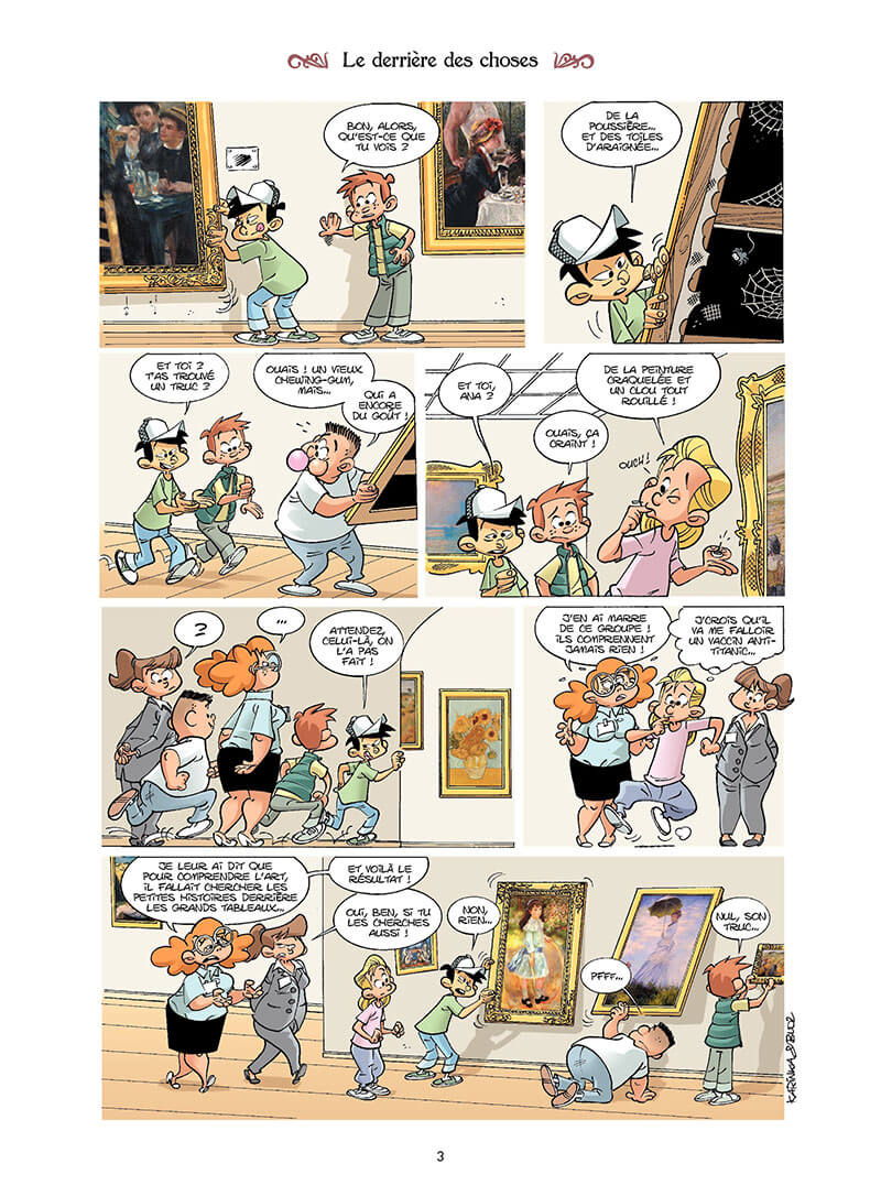 Pas d’inquiétude ! KarinKa et Bloz vous invitent à apprendre l’histoire de l’art en vous amusant. Avec eux, vous saurez pourquoi Le Déjeuner sur l’herbe a fait scandale et combien de tableaux a vendus Van Gogh de son vivant, et vous découvrirez que le terme « impressionnisme » était au départ une injure faite par un critique d’art.