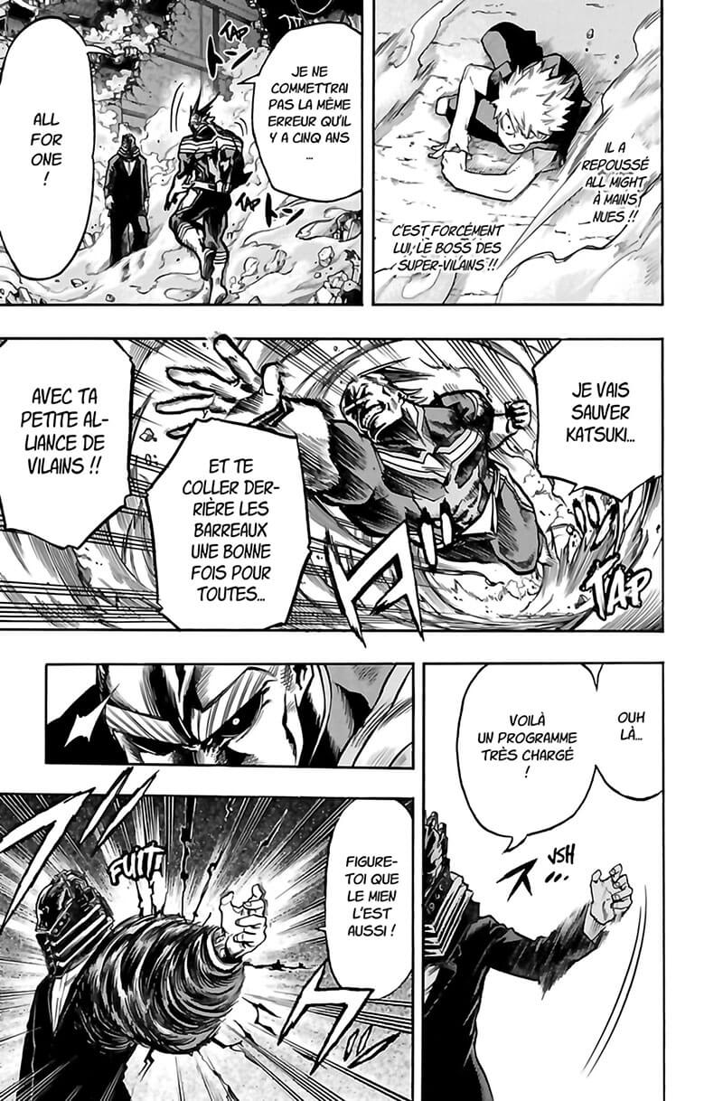 Tandis que Yuei est sur la sellette, All Might et les autres héros préparent la contre-attaque et investissent le QG de l’alliance des super-vilains. Hélas, c’est à ce moment que le redoutable All for One se montre enfin ! Alors qu’un combat épique s’engage, Izuku, Shoto et leurs compagnons assistent, impuissants, à la scène. Le numéro un des héros aura-t-il la force d’abattre son ennemi de toujours ?