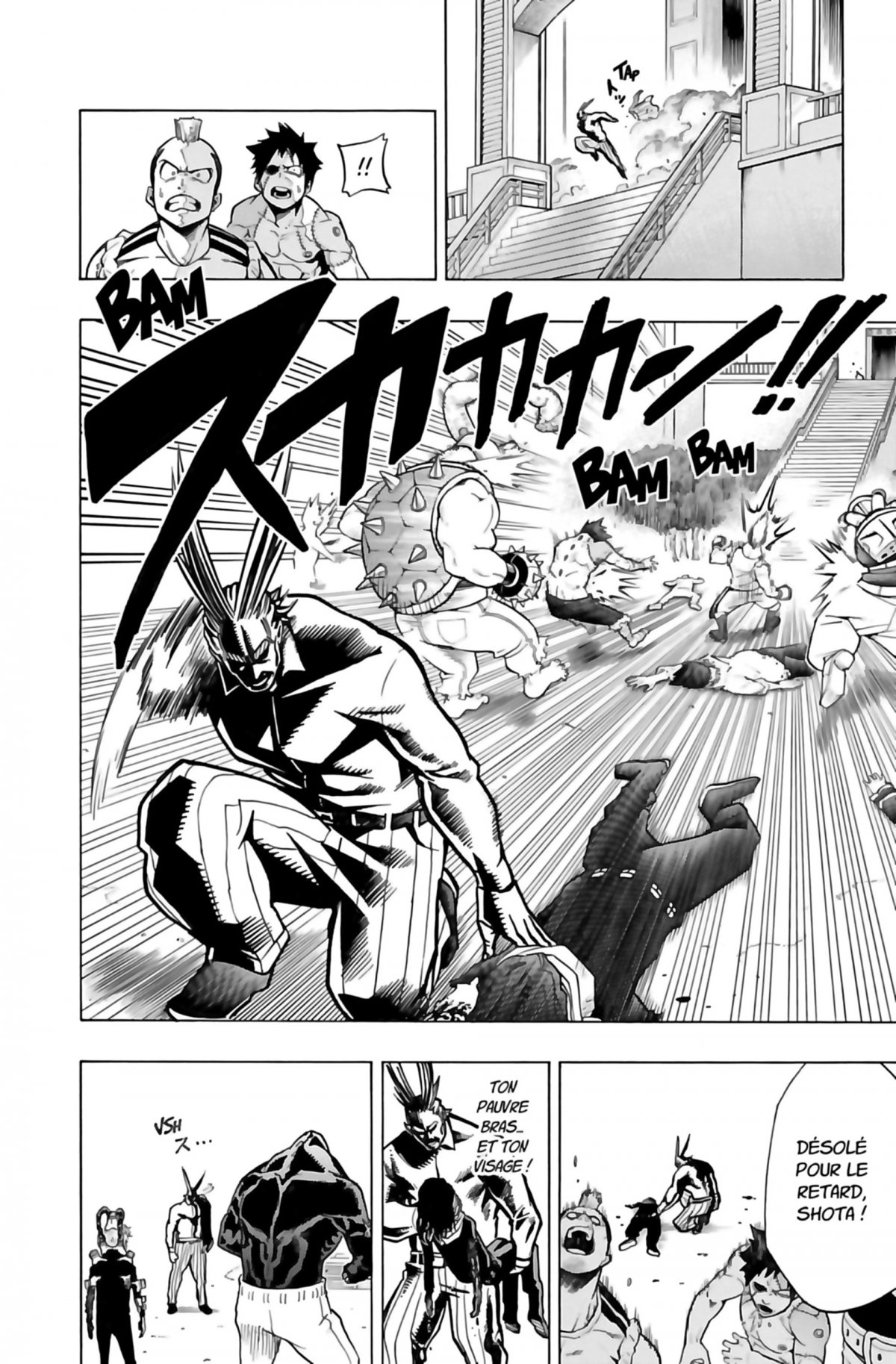 Confronté au test d’aptitudes d’Eraserhead, Deku échappe de justesse au renvoi en réussissant à concentrer le One for All dans un seul doigt au moment crucial ! Dernier du classement avec une seule performance surhumaine à son actif, il compte bien tout donner pour remonter la pente. Et justement, il va avoir l’occasion de faire ses preuves, puisque sa formation au métier de super-héros commence enfin...