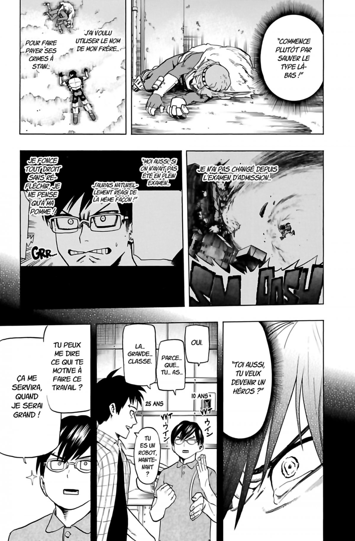 Mais lorsqu’il part s’entraîner sur le terrain avec son nouveau mentor, les choses se corsent : l’alliance des super-vilains lance une attaque sur Hosu ! Alors que la ville est en proie au chaos, Tenya se retrouve en mauvaise posture face à Stain. Deku et Shoto, qui se sont rués à son secours, réussiront-ils à tenir jusqu’à l’arrivée des renforts ?