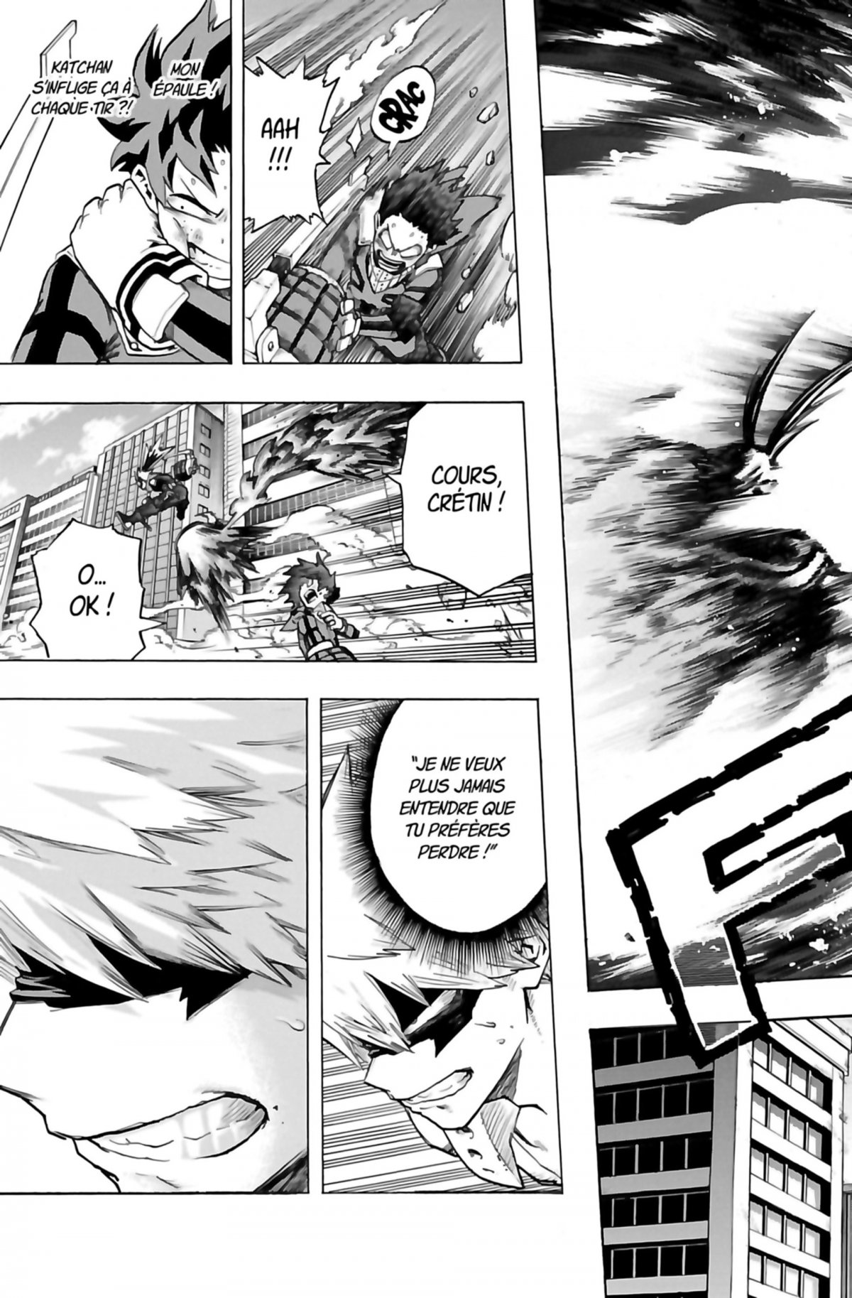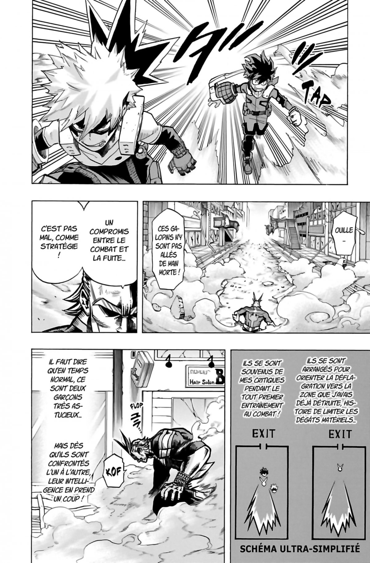 Les vacances approchent, et avec elles le camp d’été spécial concocté par Yuei ! Passage obligé avant cet événement : l’épreuve pratique de fin de trimestre... Seulement, cette année, ce ne sont pas des robots que les seconde vont devoir affronter, mais leurs propres professeurs ! Pour Katsuki et Deku, opposés à All Might, le défi est de taille. Même si les deux rivaux réussissent enfin à travailler en équipe, difficile de savoir si leur stratégie portera ses fruits... Contre des héros surentraînés, les adolescents sauront-ils sortir leur épingle du jeu ?
