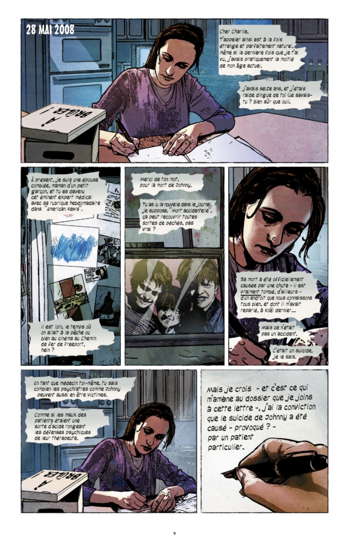 On ne sait pas vraiment quand ni comment tout a commencé... Toujours est-il qu’un jour, par hasard, N. se baladait autour d’Ackerman’s Field, un endroit désert dans le Maine. Par hasard toujours, il finit par tomber sur le monument mégalithique qui y trône. Et qui rassemble 7 pierres dressées. Mais à travers l’objectif de son appareil photo, N. croit en compter 8... N. compte, recompte, et la panique commence à s’emparer de lui. C’est pourtant bien ça : tantôt 7, tantôt 8. Un abîme d’angoisse s’ouvre devant lui : sa santé mentale vacillerait-elle au point que ses perceptions de la réalité ne soient plus justes ? Ou peut-être en cet endroit précis le voile séparant la réalité rassurante d’un univers parallèle, un cosmos terrible et inconnu, serait-il plus mince, prêt à se déchirer ? N. n’est plus capable de vivre normalement. En proie à la plus indicible des terreurs, il sent qu’il est responsable du maintien de la réalité telle qu’on la connaît. Envahi de TOC (troubles obsessionnels compulsifs), il décide d’aller consulter un psychiatre. La contamination peut commencer... Marc Guggenheim et Alex Maleev adaptent une nouvelle de Stephen King à mi-chemin entre Le Horla, Lovecraft et les récits de virus et de contamination. Jouant sur les différentes interprétations possible d’un même phénomène, laissant toujours planer le doute sur la réalité des évènements qui se déroulent, ils distillent une angoisse rampante, étouffante, et de plus en plus envahissante... jusqu’à perturber le lecteur avec ces terrifiantes interrogations : peut-on attraper des névroses comme on attrape un rhume ? Et y a-t-il une autre dimension derrière la réalité telle que nous la percevons au quotidien ?
