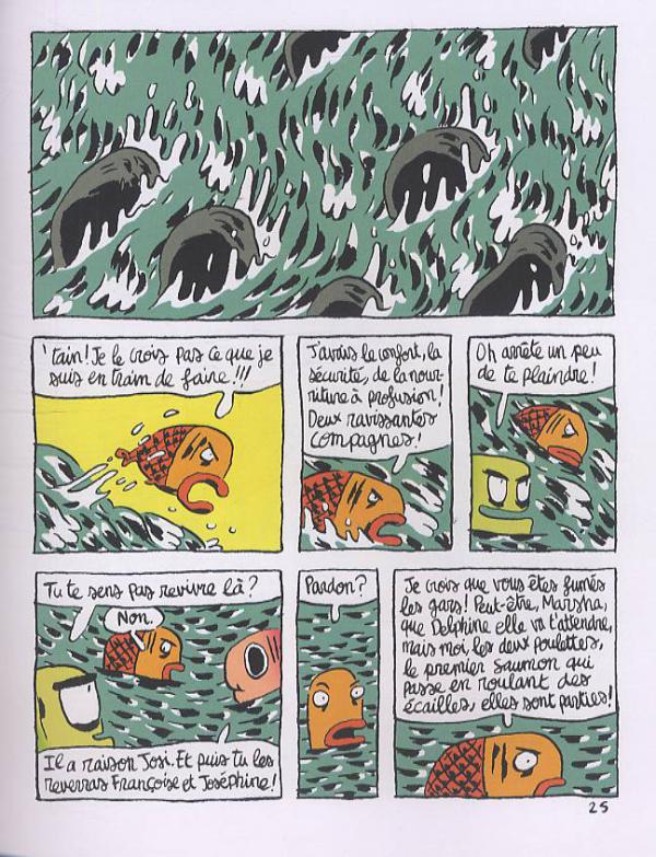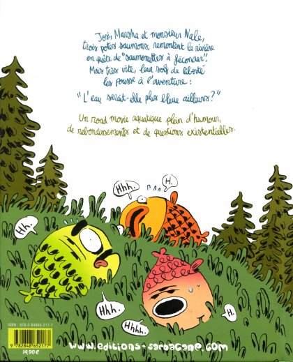 Josi, Marsha et monsieur Nale, trois potes saumons, remontent la rivière en quête de "saumonettes à féconder". Mais très vite, leur soif de liberté les pousse à l’aventure : l’eau serait-elle plus bleue ailleurs ?