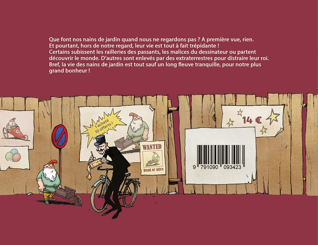 Que font nos nains de jardin quand nous ne regardons pas ? A première vue, rien. Et pourtant, hors de notre regard, leur vie est tout à fait trépidante ! Certains subissent les railleries des passants, les malices du dessinateur ou partent découvrir le monde. D’autres sont enlevés par des extraterrestres pour distraire leur roi. Bref, ce recueil de strips surréalistes, absurdes et hilarants vous démontrera que la vie des nains de jardin est tout sauf un long fleuve tranquille, pour notre plus grand bonheur !