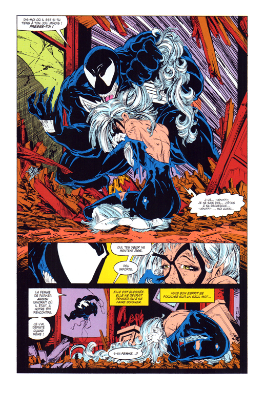Peter Parker a rapporté des Guerres Secrètes un nouveau costume, bien pratique, qui obéit à tous ses ordres et change de forme à volonté. Mais quand il découvre que le costume est en fait une entité symbiotique extraterrestre, il cherche à s’en débarrasser. La créature va trouver une autre personne avec qui entrer en symbiose, le journaliste aigri Eddie Brock. L’union des deux êtres va donner Venom, l’un des personnages les plus importants de la galaxie Spider-Man