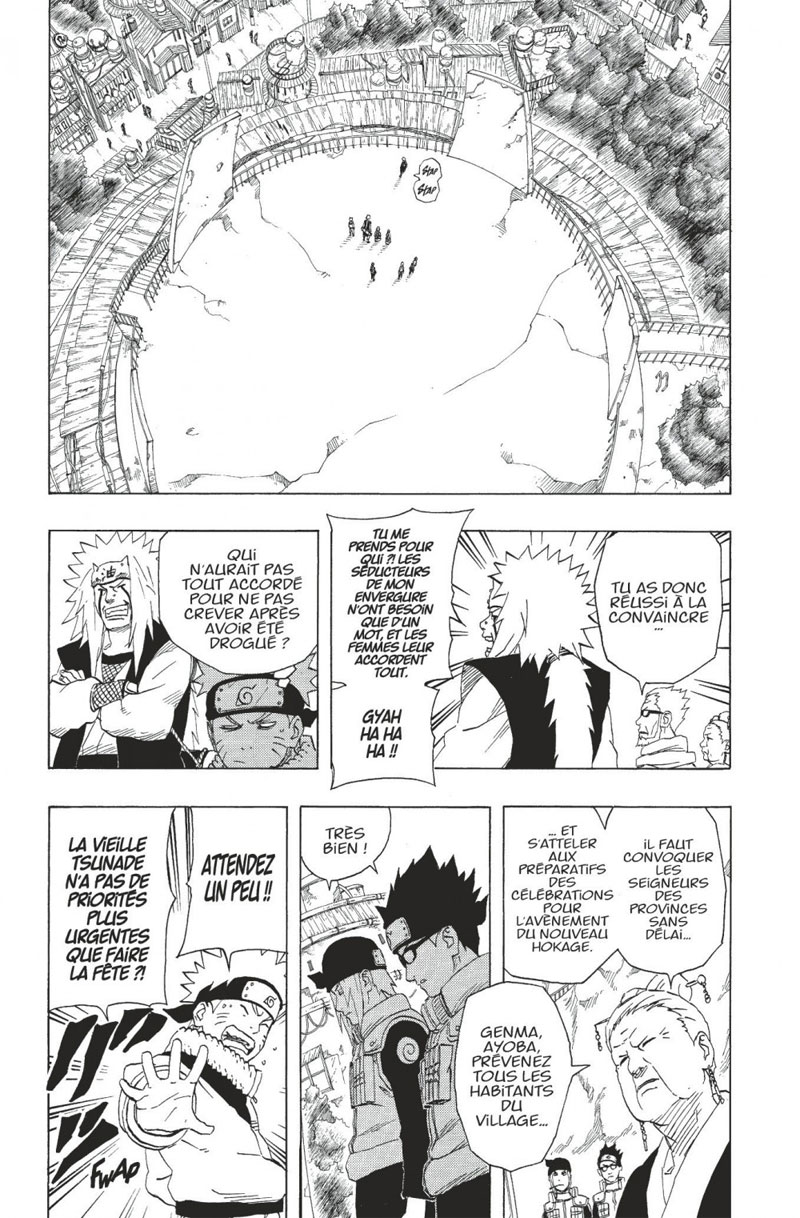 Alors que l’on prépare la célébration de l’avènement du 5e Hokage, Tsunade, elle, retrouve Konoha, son village. Ses techniques de guérison employées sur Sasuke ne tardent pas faire reculer le mal. Mais stupeur ! À peine remis, celui-ci provoque Naruto en combat singulier !! Les deux ninjas vont-ils réellement s’affronter ?