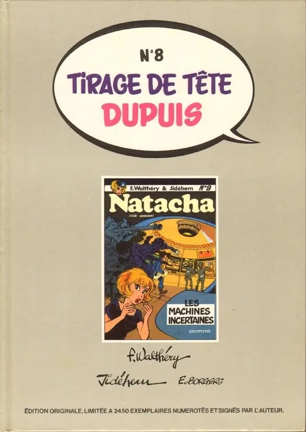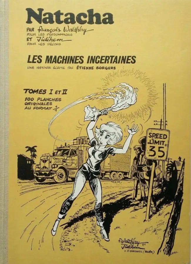 Machines incertaines (Les) est le volume 9 de la série Natacha par Etienne Borgers, François Walthéry et Jidéhem, paru en 1982. Selon nos informations, il en existe 5 éditions, dont la principale est éditée par Dupuis en 1982.