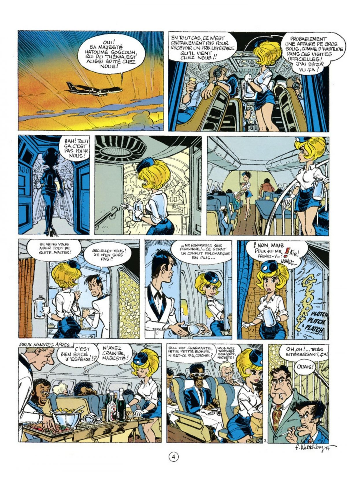 Natacha et Walter sont approchés par la Sécurité Nationale, pour infiltrer l’intimité du roi du Thénia, en visite officielle. En effet, le conseiller particulier du roi, le colonel Von Tripp, est un ancien mercenaire contre lequel de nombreux mandats d’arrêts internationaux ont été lancés. Le major Martenne de la Sécurité Nationale compte sur Natacha pour espionner les agissements de ce dangereux individu qui organise une escapade en Suisse avec une escorte de cinq superbes voitures américaines. Alors que Natacha accompagne le roi dans ses déplacements dans notre pays, Walter a réussi à s’introduire dans la résidence royale en postulant comme cuisinier, lui qui est totalement ignorant en la matière !