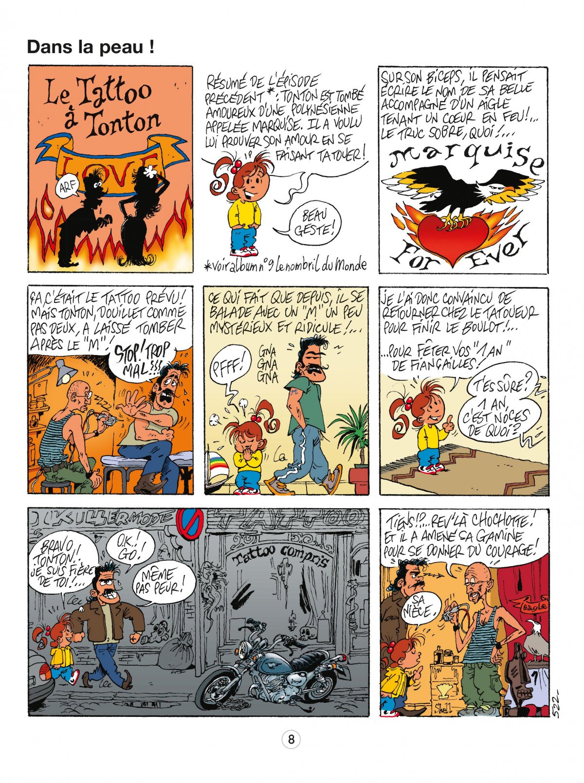 "Pour qui ils se prennent, les garçons ? ! Les rois du monde ! ? Mais moi aussi, j’ai envie de devenir aventurier... euh aventurière ! Y a pas écrit "future femme au foyer" sur mon front, mais plutôt "Born to be globe-trotteuse" ! Alors, si tous les gars du monde pouvaient me lâcher les baskets, que je puisse montrer de quoi les filles sont capables. Non mais sans blague !..." Le premier grand amour de Nathalie va lui mettre la tête à l’envers, un peu comme le décalage horaire !... Justin Bisou qu’il s’appelle le bourreau du coeur. L’album raconte aussi comment Monsieur tonton se fait larguer par sa fiancée juste au moment où il se fait tatouer son nom sur le biceps. La pauv’moman nous fait crises de larmes sur crises de larmes ; le p’tit frère est victime d’une série noire d’anthologies et le papa overspeedé et complètement booké, brille de plus en plus par son absence !