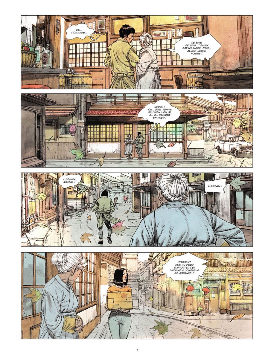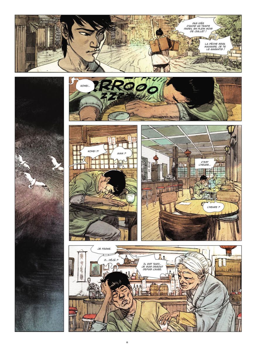 Japon, été 1970. Le réveil de Takashi, jeune pêcheur du port de Shikomi, sonne alors qu’il fait encore nuit... En tirant ses rideaux, il observe les villageois affolés : il est bien 9h du matin... mais le jour ne s’est pas levé ! Pire encore, la température chute brutalement et la neige se met à tomber... La situation devient critique : si la route n’est plus praticable, Shikomi sera totalement isolé. Alors que des villageois volontaires partent chercher des secours, les autres trouvent refuge dans le bar de Makiko, dont la bonne humeur réchauffe tous les coeurs. Cependant, l’arrivée de Kohei, l’ivrogne du village, va tout bouleverser... Ce dernier raconte avoir vu un cadavre bardé de coups de lames si profonds que la neige est recouverte de sang. Takashi décide d’aller voir par lui-même et constate qu’il dit la vérité... Que s’est-il passé ? Y a-t-il un assassin parmi eux ?