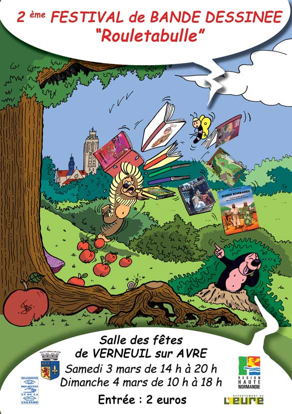 Seconde édition de Rouletabulle le samedi 3 et dimanche 4 mars 2007 à la salle des fêtes de Verneuil-sur-Avre (Eure). Horaires d’ouverture le samedi de 14 h à 20 h et le dimanche de 10 h à 18 h. Tarif : 2 euros (gratuit pour les moins de 12 ans). Renseignements au 02.32.32.36.23 ou par mail paudouxmjc[at]yahoo.fr ou educpop[at]wanadoo.fr