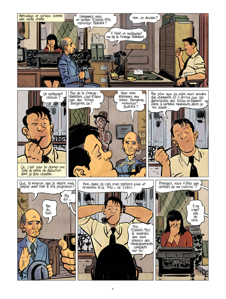 En cette fin de printemps, Nestor Burma et sa secrétaire Hélène Chatelain reçoivent la visite d’un diamantaire du 9e arrondissement, Omer Goldy, qui les envoie sur les traces d’un restaurant chinois de la rue de la Grange-Batelière et de son propriétaire, l’énigmatique Tchang-Pou. Le mystère s’épaissit lorsque Burma découvre sur place les cartes de visite d’un ancien lupanar de Shanghai où sévissaient des prostituées russes et, dans une armoire, ce qui ressemble fort au cadavre d’une femme blonde et nue... Mais tout bascule carrément lorsque le diamantaire, est retrouvé mort dans son bureau. Deux macchabées presque coup sur coup. Soupçonnant tout à la fois un chantage, une affaire de moeurs, un trafic de diamants et dieu sait encore quelles turpitudes, Nestor Burma intensifie ses recherches, qui le mettront bientôt sur la piste de la maison Natacha, une entreprise de lingerie de luxe tenue par deux immigrées russes... Le roman de Léo Malet Boulevard... ossements, vingt-deuxième titre de la série Nestor Burma, a initialement paru en 1957, Nicolas Barral, dessinateur nouveau venu dans cet univers, en livre une interprétation fidèle à l’esprit de la série et du personnage... sans s’interdire un zeste d’humour qui pimente agréablement cette nouvelle enquête du « détective qui met le mystère K.O. ».