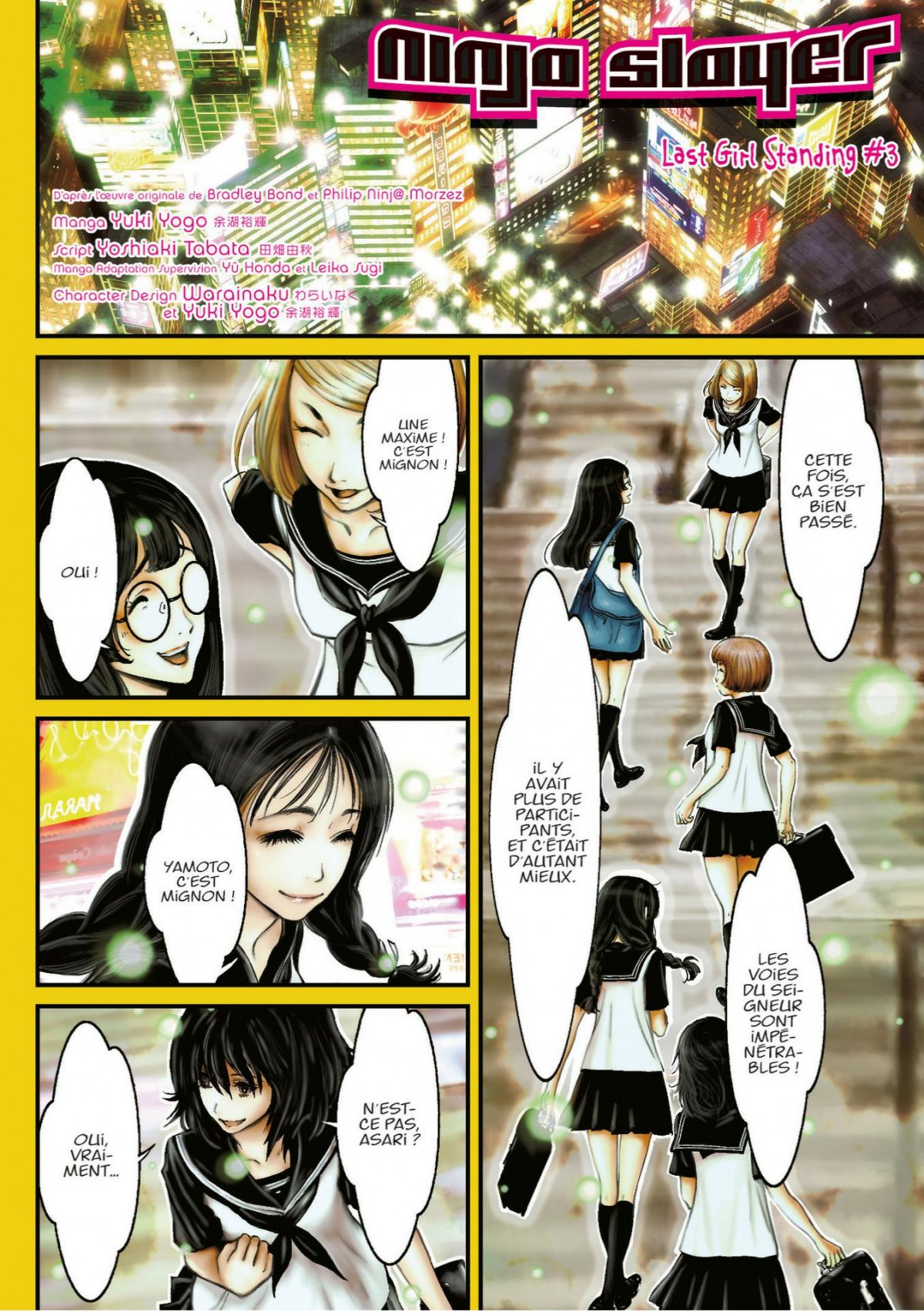 Ninja slayer 3 est le volume 3 de la série Ninja slayer par Yoshiaki Tabata, Yûki Yogo, Philip Ninj@ Morzez et Bradley Bond, paru en 2016. Selon nos informations, il n'en existe qu'une seule édition, publiée par Kana.