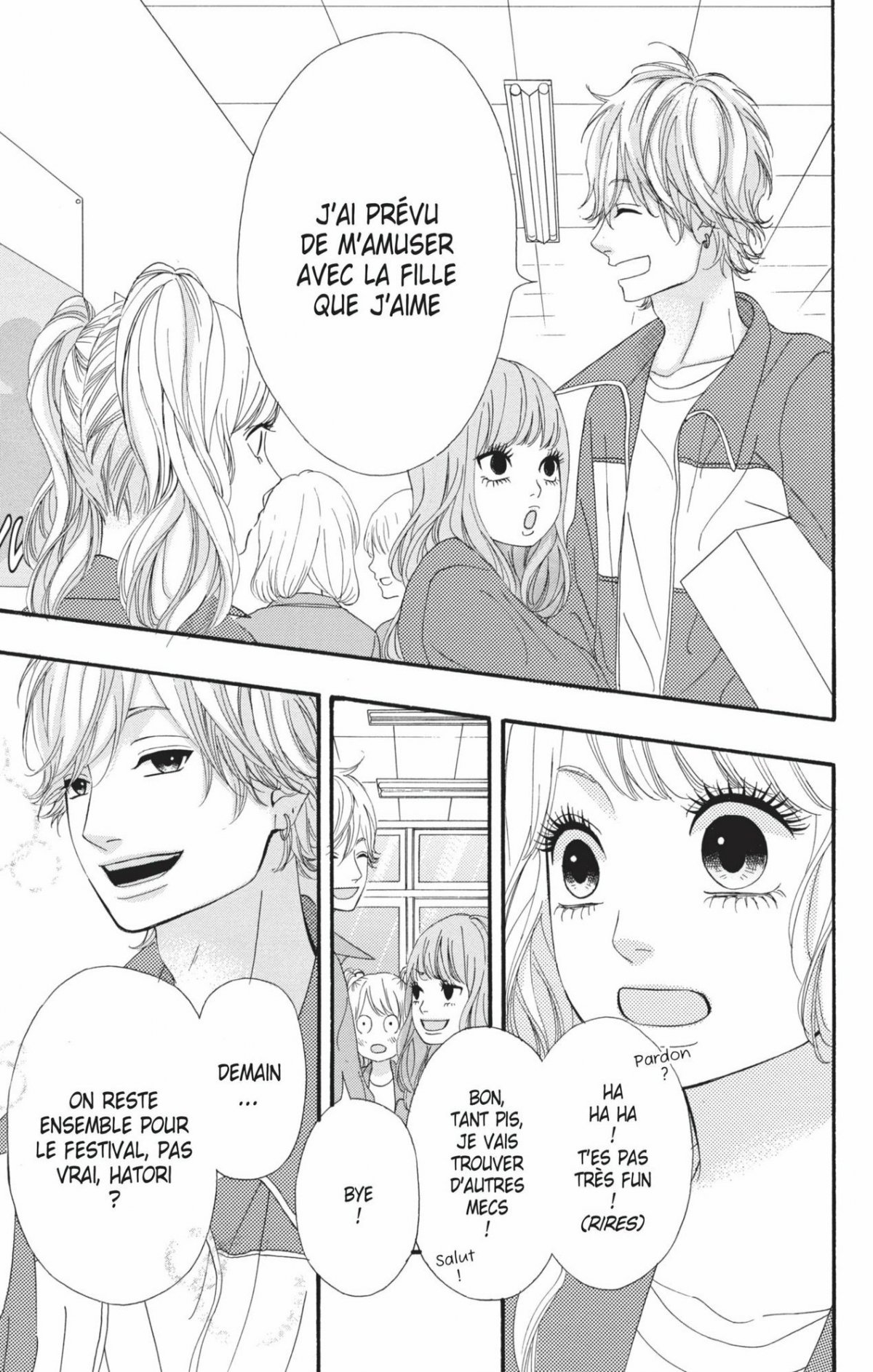 Hatori n’en croit pas ses oreilles quand Hiromitsu lui déclare sa flamme ! What ?! Lui, le beau gosse le plus populaire du lycée, aurait sincèrement jeté son dévolu sur elle ? Les deux tourtereaux s’apprêtent à sortir officiellement ensemble. Tout cela n’est, hélas, pas pour plaire à Rita, qui profite de la fête de l’école pour exprimer sa jalousie. Et sa petite amie Adachi dans tout ça ?