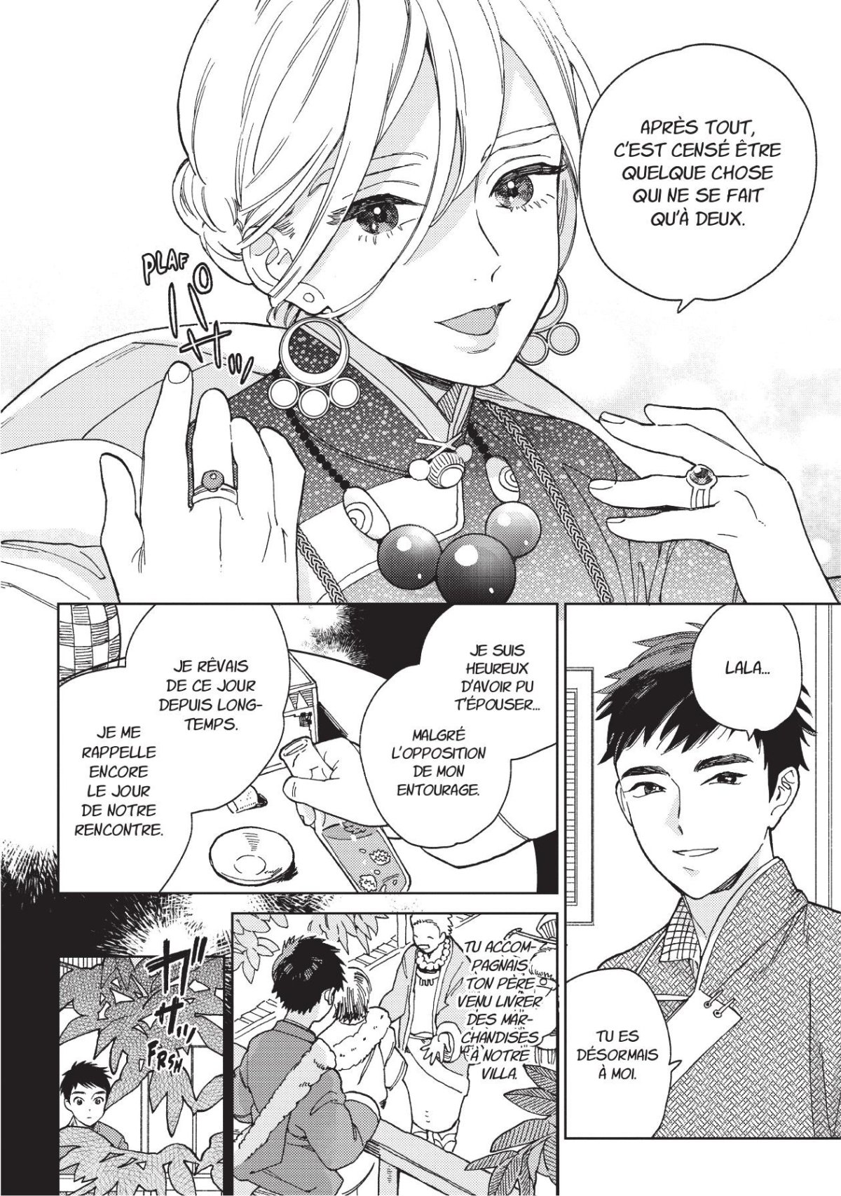 Noces de Lala (Les) 1 est le volume 1 de la série Noces de Lala (Les) par Tamekou, paru en 2023. Selon nos informations, il n'en existe qu'une seule édition, publiée par noeve GRAFX.