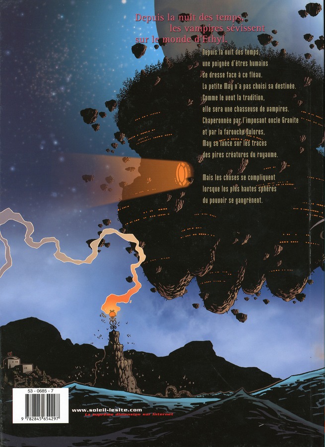 Depuis la nuit des temps, les vampires sévissent sur le monde d’Ethyl. Depuis la nuit des temps, une poignée d’êtres humains se dresse face à ce fléau. La petite May n’a pas choisi sa destinée. Comme le veut la tradition, elle sera une chasseuse de vampires