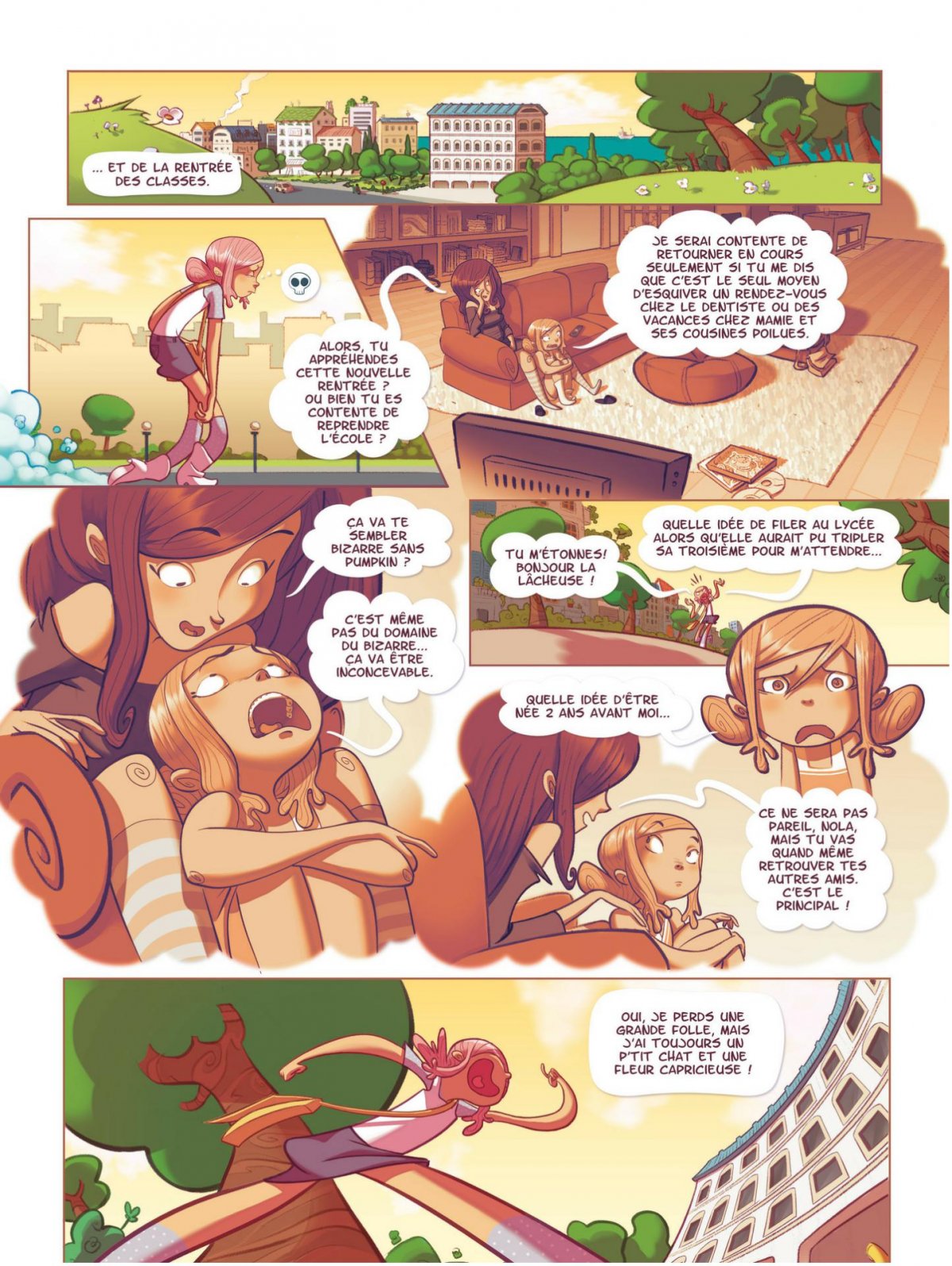 Nola vient de passer un été radieux... Mais superbement ennuyeux. Accro au fantastique et aux contes, elle voit alors des mystères partout : le glacier du port a l’air louche, et si c’était une vieille sorcière cherchant à capturer des enfants ? Un nouveau professeur trop beau et trop gentil pour être vrai ? Nola se lance alors dans une quête de vérité qui promet d’être riche en aventures et en surprises...