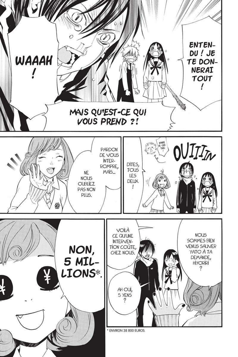 Tout va pour le mieux, ou presque, pour Yukine depuis qu’il a été purifié. Mais les conséquences de ses actes se font toujours sentir. En effet, il découvre qu’il a indirectement causé la chute de l’un des shinki de Tenjin. De son côté, Yato cherche à guérir Hiyori de sa condition, mais doit-il vraiment couper tout lien avec la jeune fille comme le préconise le dieu du Savoir ? Pendant ce temps, chez Bishamonten, de sinistres forces sont à l’oeuvre...