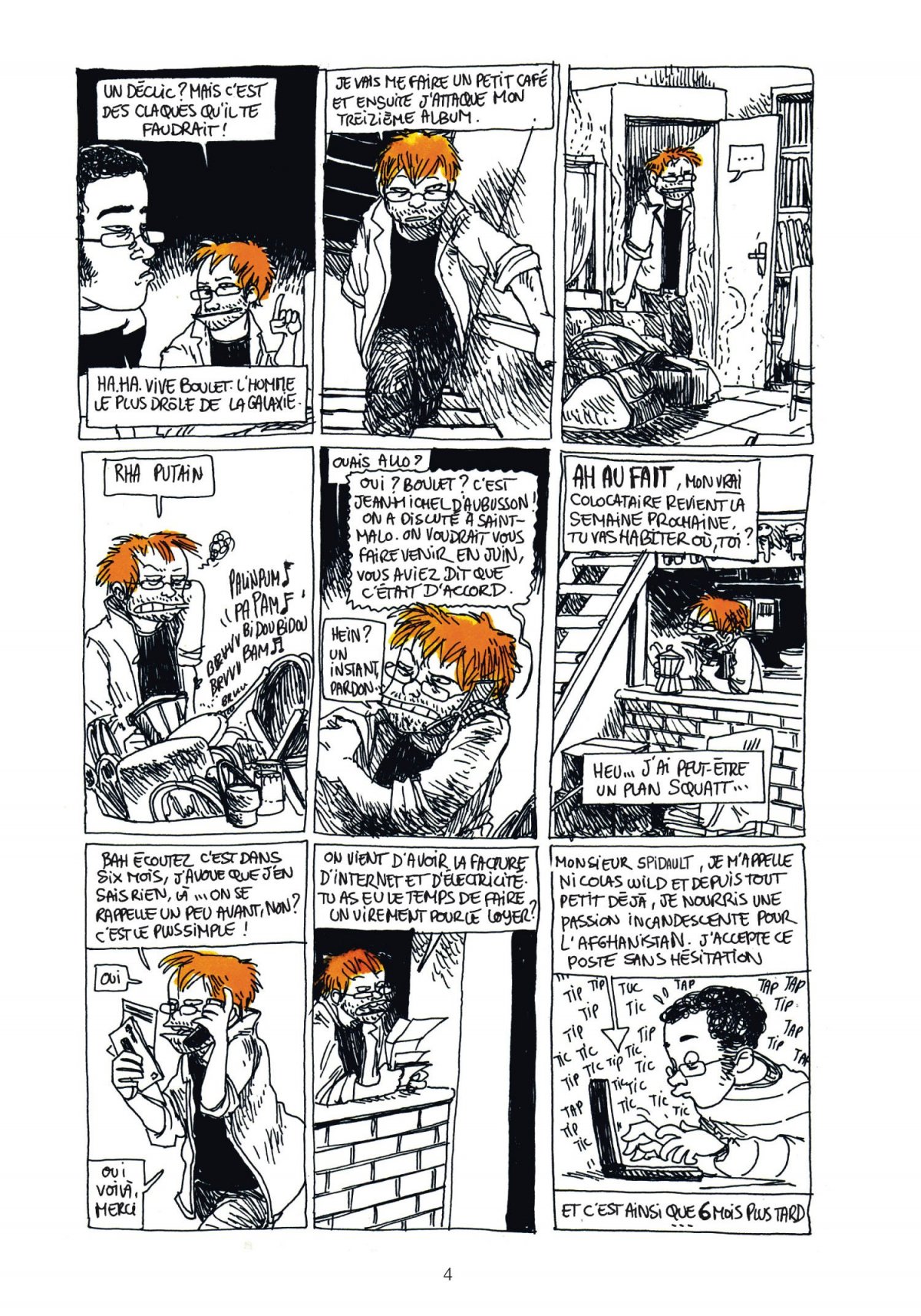 "Dans Notes, vous trouverez sous la forme de billets d’humeur sur la musique, la télé, la BD, la nourriture, le sexe et un peu sur Mireille Matthieu. Toutes ces réflexions sortent de mes carnets à dessin et servaient à alimenter un blog ouvert en 2004 sous les conseils de mes amis. Ce tome compile la deuxième année, les autres suivront d’ici peu." Boulet