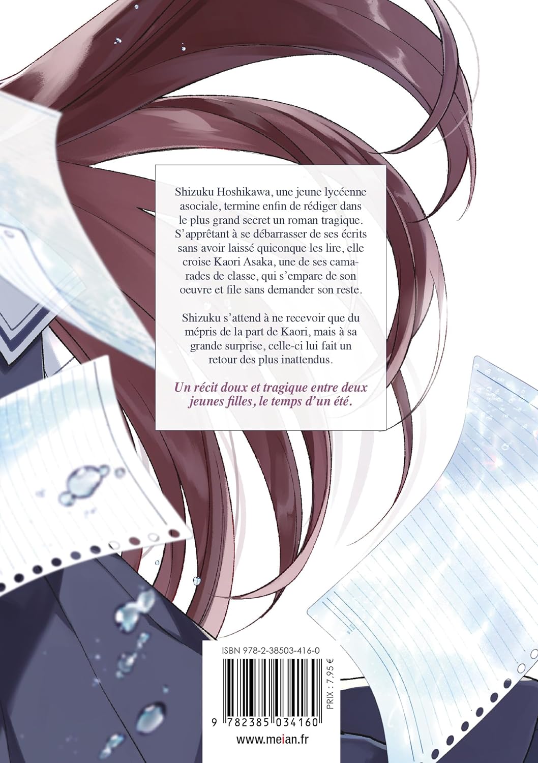 Shizuku Hoshikawa, une jeune lycéenne asociale, termine enfin de rédiger dans le plus grand secret un roman tragique. S’apprêtant à se débarrasser de ses écrits sans avoir laissé quiconque les lire, elle croise Kaori Asaka, une de ses camarades de classe, qui s’empare de son oeuvre et file sans demander son reste