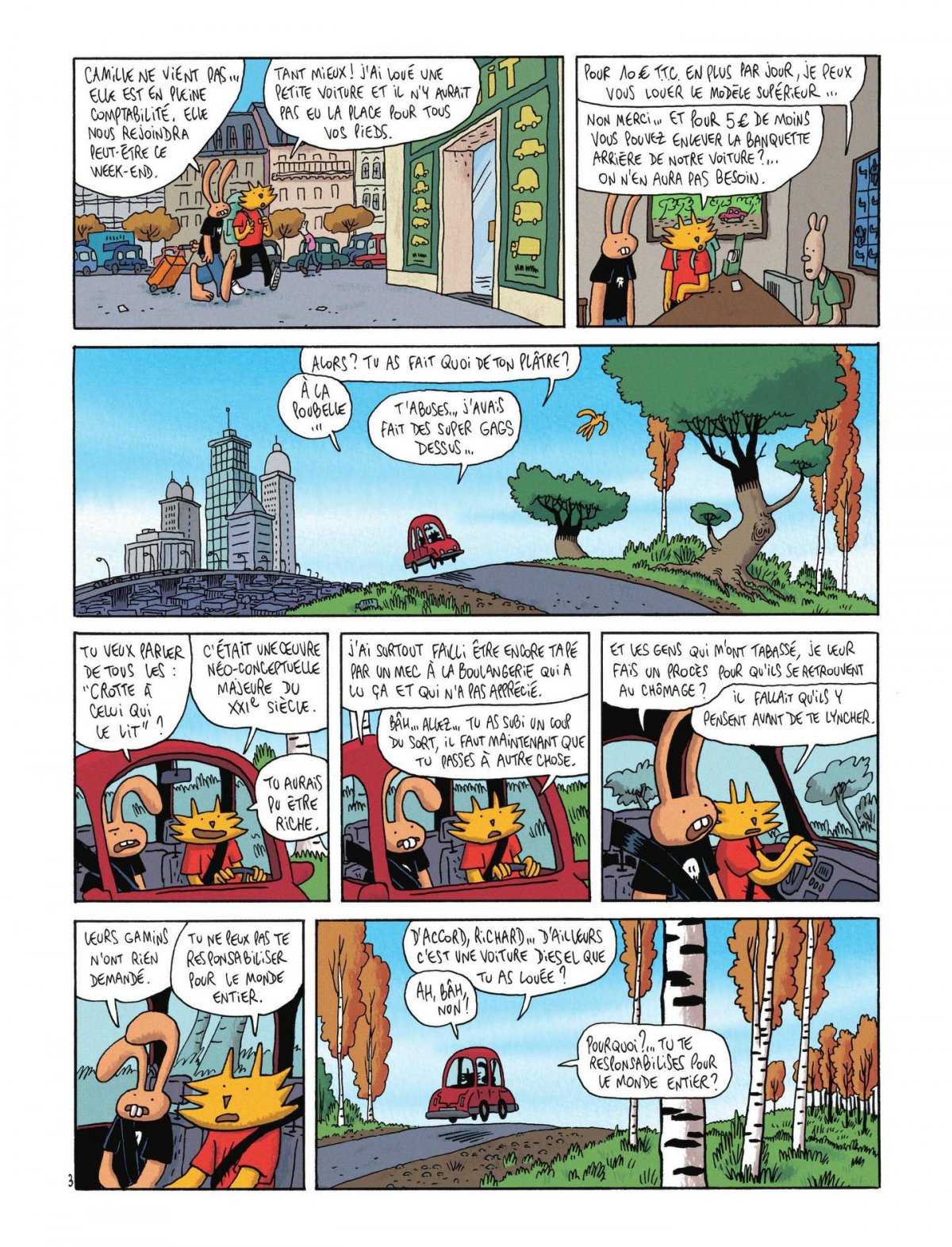 Lapinot, le bras plâtré est face à un nouveau dilemme : doit-il ou non porter plainte contre les parents qui l’ont injustement tabassé dans un jardin public, après l’avoir pris pour un pédophile ? Tiraillé entre son besoin de justice et son empathie pour les familles de ses assaillants, Lapinot part se mettre au vert avec Richard. Une retraite compliquée, puisqu’une météorite s’écrase sur le capot de la voiture, alors qu’ils font une pause sur le parking d’un supermarché… et les ennuis commencent ! Bastons, appât du gain, courses-poursuites en forêt, collapsologues barrés… Lapinot et Richard ne sont décidément pas au bout de leurs peines.