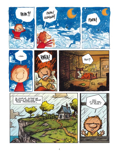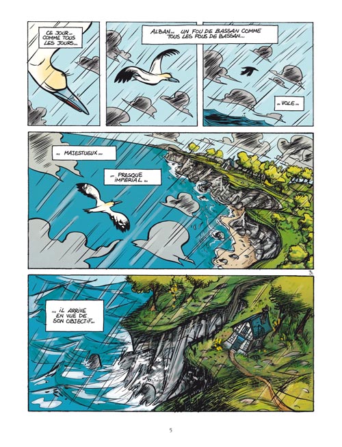 Octave n’aime pas la pluie. Un bruit assourdissant le force pourtant à mettre le nez dehors. Le responsable : Alban, un fou de Bassan qui a raté son atterrissage. Alban a tout bravé pour partir à la recherche d’Octave afin d’obtenir son aide, car son papa est retenu prisonnier dans un grand parc marin. C’est sur le dos du courageux volatile qu’Octave s’envole vers une nouvelle aventure.