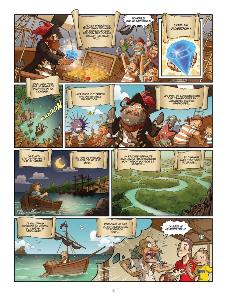 Swan et Néo dévalent la cascade d’un parc aquatique. Mais à la sortie, ils sont projetés par Mystery Game dans un monde parallèle rempli de pirates patibulaires. L’un d’eux leur raconte la légende du cruel Jack le Sanguinaire, qui aurait caché sur son île secrète un fabuleux trésor, volé au plus terrifiant des monstres marins, le Kraken. Le plus gros diamant du monde : L’oeil de Poséidon.
