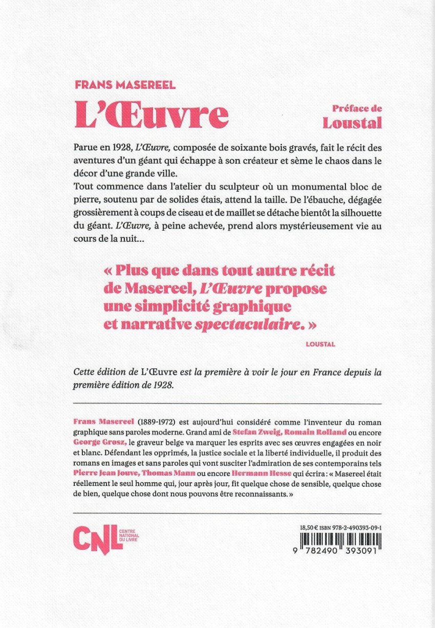 Parue en 1928, L’œuvre, composée de soixante bois gravés, fait le récit des aventures d’un géant qui échappe à son créateur et sème le chaos dans le décor d’une grande ville. Tout commence dans l’atelier du sculpteur où un monumental bloc de pierre, soutenu par de solides étais, attend la taille. De l’ébauche, dégagée grossièrement à coups de ciseau et de maillet se détache bientôt la silhouette du géant. L’œuvre, à peine achevée, prend alors mystérieusement vie au cours de la nuit