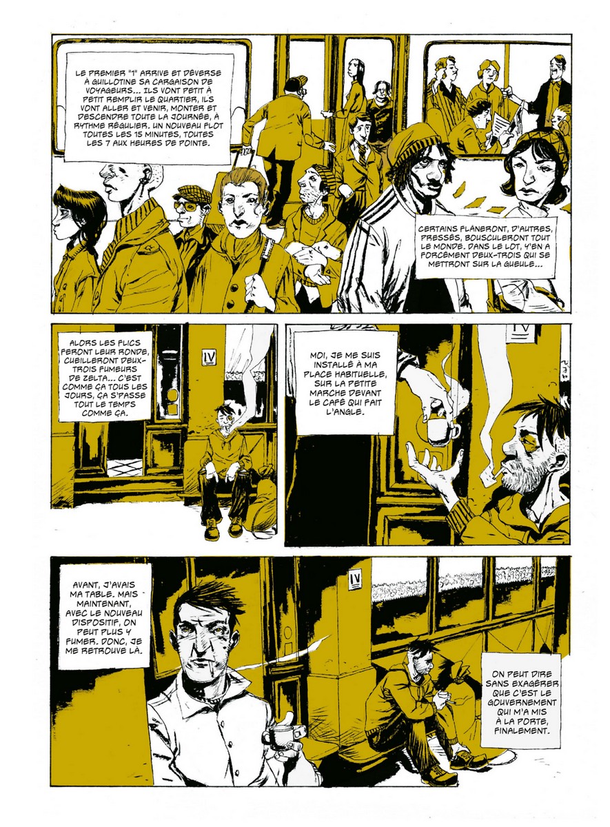 Il épuise ses journées devant ce café, observant le va et vient d’un tramway qui avale ou recrache à heures fixes un nouveau flot de gens