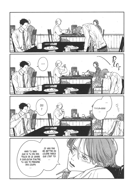 À 39 ans, Nozue réalise qu’à force de s’être laissé porter par son quotidien, il a fini par s’enfermer dans sa routine : métro, boulot, dodo. Mais à l’approche de la quarantaine, le salarié n’a ni l’envie ni l’énergie d’essayer d’évoluer. C’est Togawa, son subordonné de 29 ans, qui bouscule ses habitudes en lui proposant un jour d’aller grignoter des pâtisseries dans un établissement particulièrement en vogue chez les jeunes filles. D’un goûter à l’autre, Nozue se sent rajeunir… Mais est-ce vraiment l’effet de ces gourmandises ou plutôt celui de sentiments naissants ?