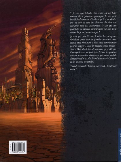 Je n’ai pas mis 30 ans à bâtir les entreprises Griselune pour voir le premier arriviste venu mettre mon rêve à bas ! Vous avez carte blanche pour le stopper ! Tous les moyens seront tolérés ! Tous ! Mais il est hors de question qu’il atteigne Omnopolis avec ce prototype ! Hors de question que nos partenaires découvrent que notre module dimensionnel n’est plus le seul et unique ! Ce serait la fin de notre monopole ! Vous devez arrêter Charlie Chevrolet ! Coûte que coûte.
