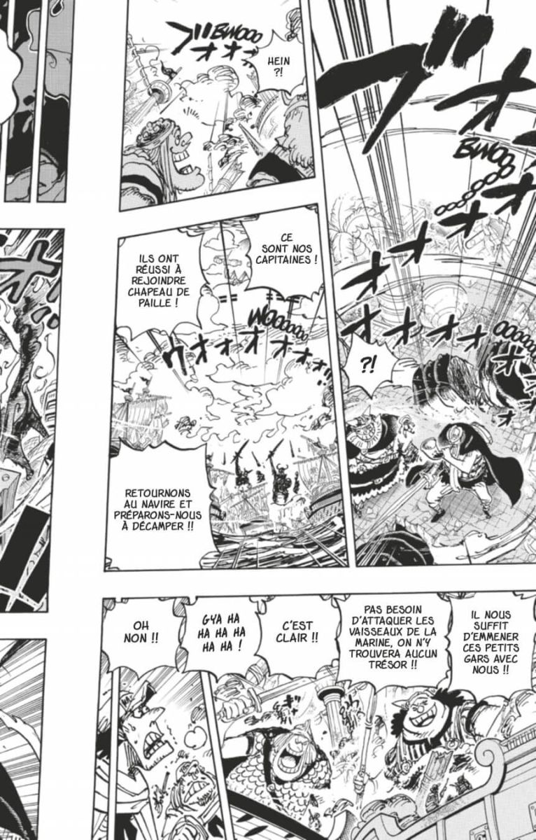 L’intervention de l’équipage des géants apporte une lueur d’espoir à Luffy et ses amis dans leur tentative de s’évader de l’île futuriste, mais c’était sans compter l’arrivée des cinq doyens venus leur barrer le chemin ! Pendant ce temps, le monde entier frémit à l’écoute du message de Végapunk dont la diffusion vient tout juste de débuter...