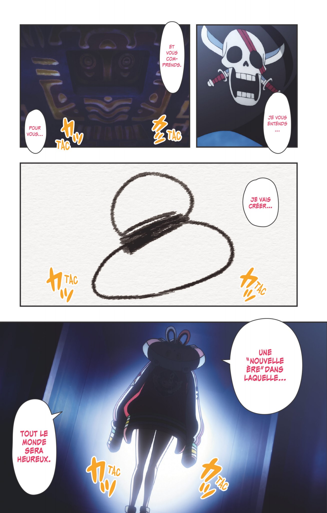 Luffy et son équipage font escale pour assister à un grand concert : celui de la chanteuse la plus populaire du monde, Uta, qui se révèle être une amie d’enfance de Luffy et... la fille du légendaire pirate Shanks Le Roux ! Mais sa voix au timbre unique pourrait bien changer l’avenir de ce monde...