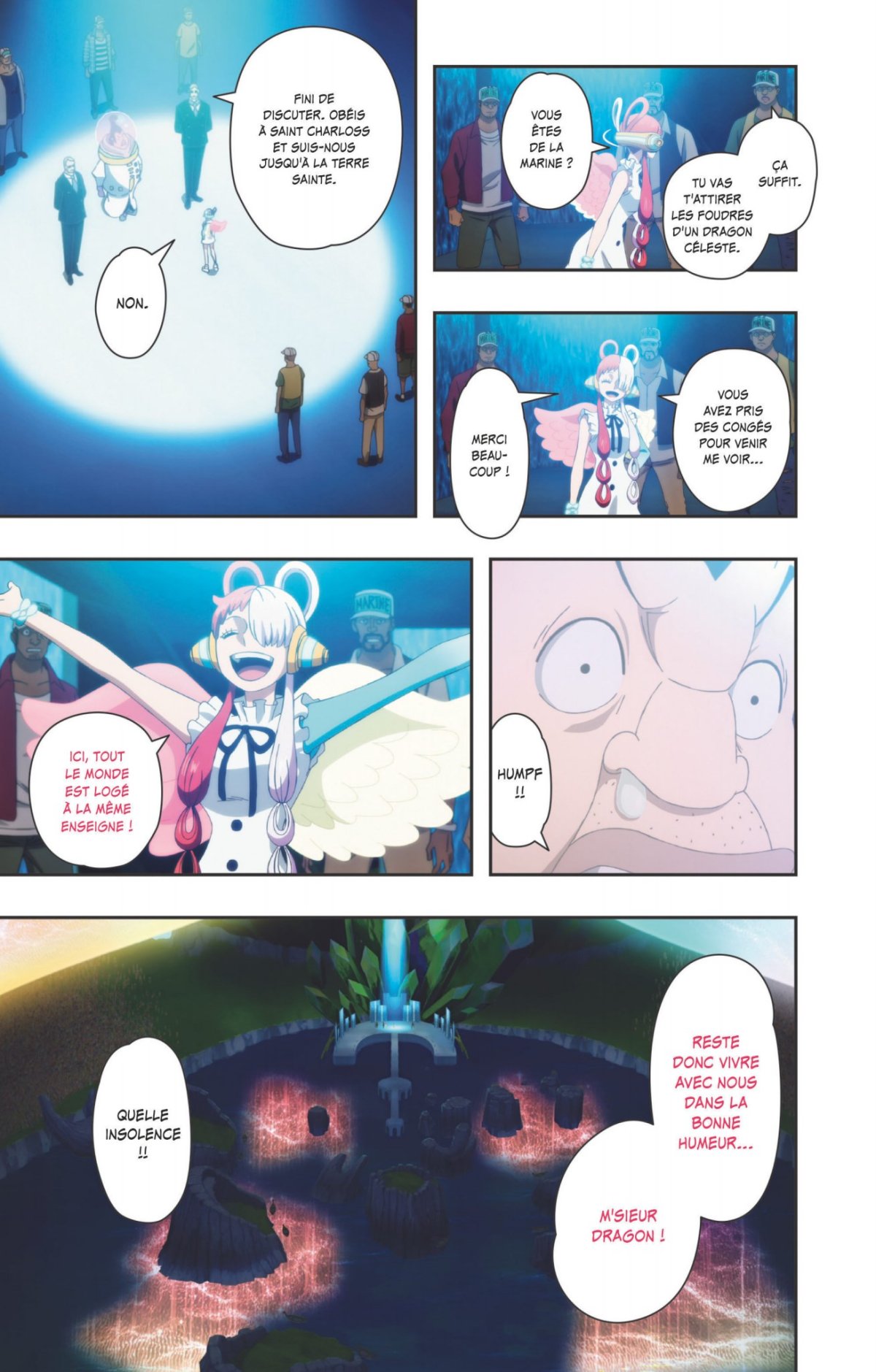 Sur Élégia, l’île de la musique, Uta la fille de Shanks donne son premier concert en public. Mais son véritable objectif vise à utiliser les pouvoirs du fruit du chant pour entraîner tous ses fans dans un sommeil éternel, ceci afin de bâtir une "nouvelle ère" ! Heureusement, Luffy se dresse face à Uta et à Tot Musica, le roi-démon né d’une partition interdite qu’elle a ressuscité !