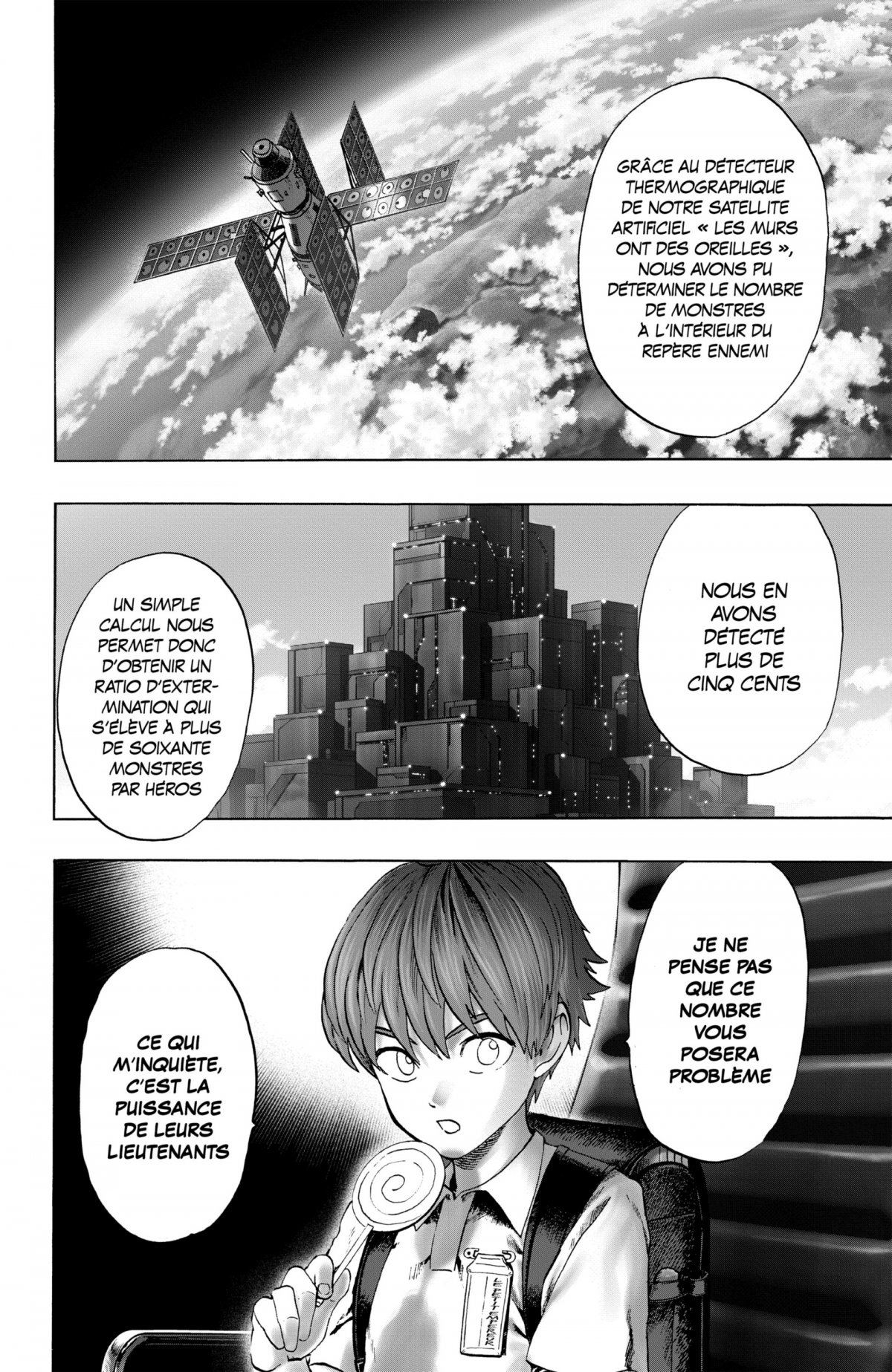 Les héros de classe S organisent une réunion stratégique pour préparer l’assaut sur l’Association des monstres, mais ils n’arrivent pas à se mettre d’accord. Et l’intervention de Bogosse Masqué ne va faire qu’empirer les choses... C’est alors que l’arrivée de King remonte la motivation des troupes ! La bataille finale est sur le point de commencer !!