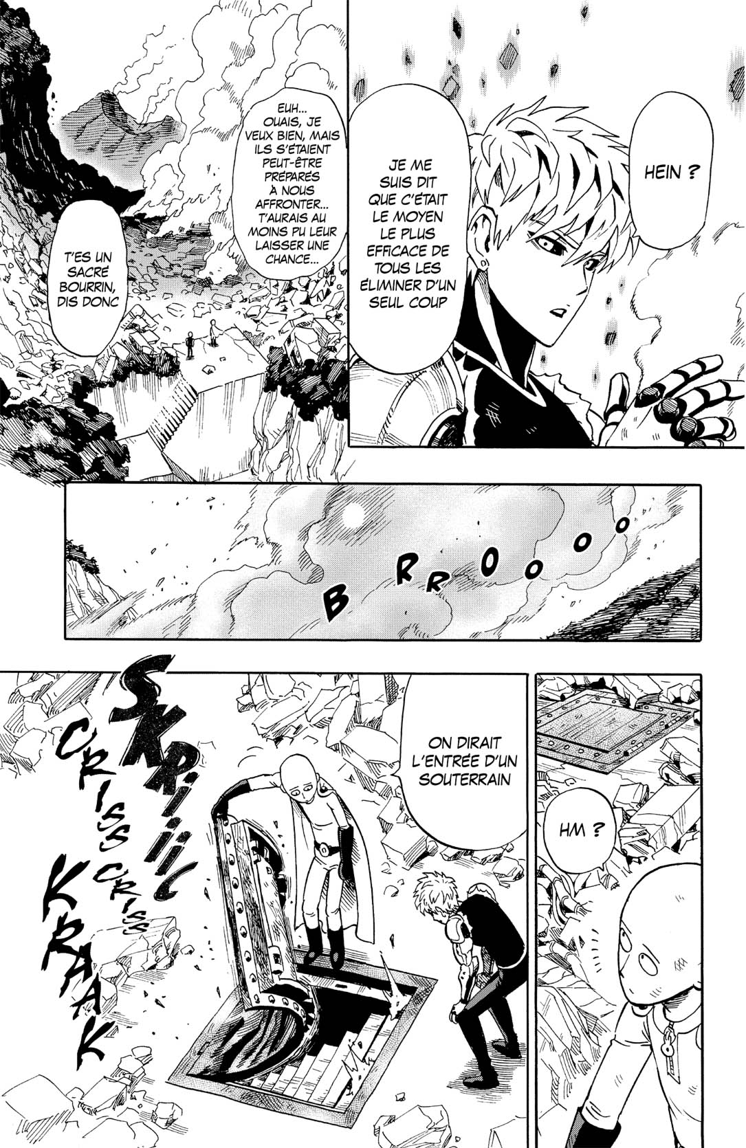 Le plus grand des secrets est sur le point d’être révélé ! Après avoir affronté plusieurs adversaires, Saitama et Genos pénètrent dans le repaire de la Maison de l’évolution ou ils vont devoir faire face à Scaravageur, l’ultime de vie artificielle. Alors que Genos se fait éliminer en une fraction de seconde, Saitama va-t-il enfin pouvoir passer auxchoses sérieuses et montrer sa véritable puissance ?